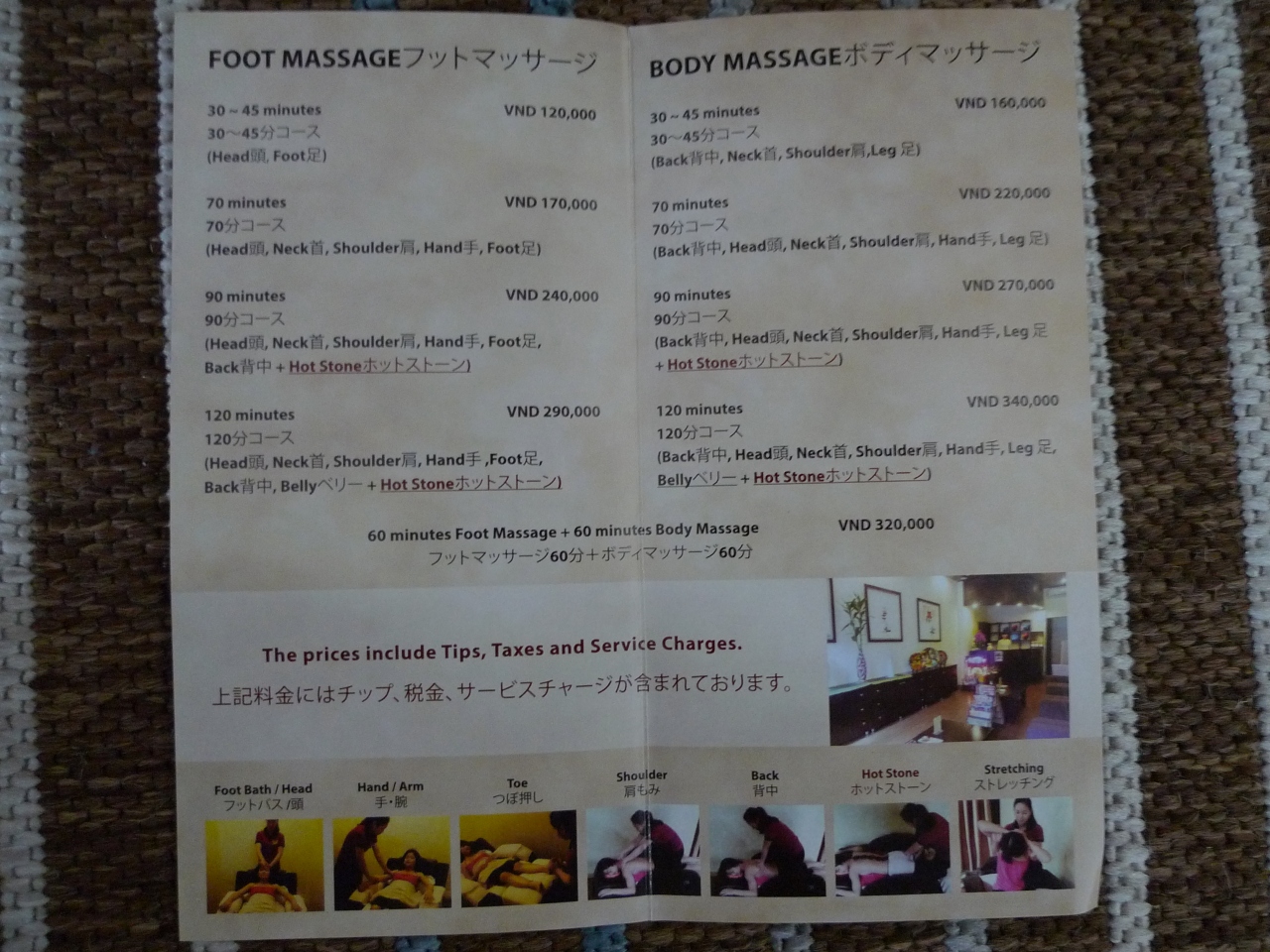 フットマッサージだが、ほぼ全身マッサージで気持ち良かった。マダムもRも施術者は若い男性で力強かった。