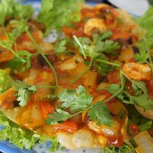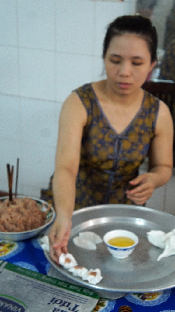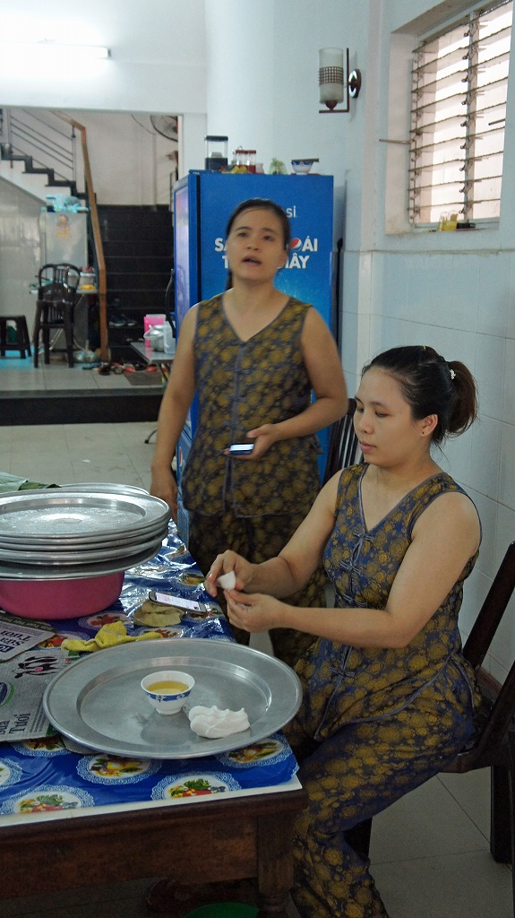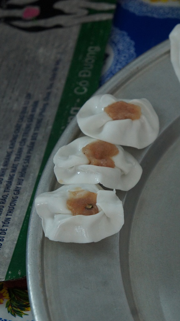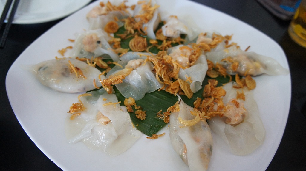 14年前に行ったときはバーレー井戸の先の住宅街に店があったと思いましたが、現在はシン・ツーリストのあるハイバンチューン通りの先にありました。お昼時を外れた時間だったのでお店は空いていました。二人だったのでホワイトローズを1皿と揚げワンタンを1皿注文しました。もちろんビールも。すぐに料理が届き美味しくいただきました。量も二人でちょうど良かったです。料理を待っている間に欧米人を連れたガイドが来て、写真を撮るために実演をお願いしていたので一緒に撮らせてもらえました。食べるだけでなくこの実演を見るのは必須だと思います。