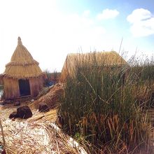チチカカ湖にある、かやのような植物で作られた人工の島です。