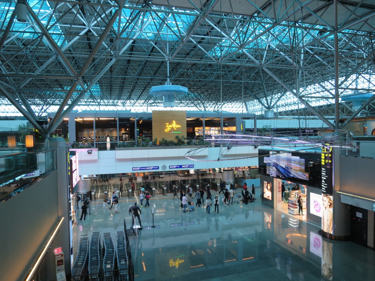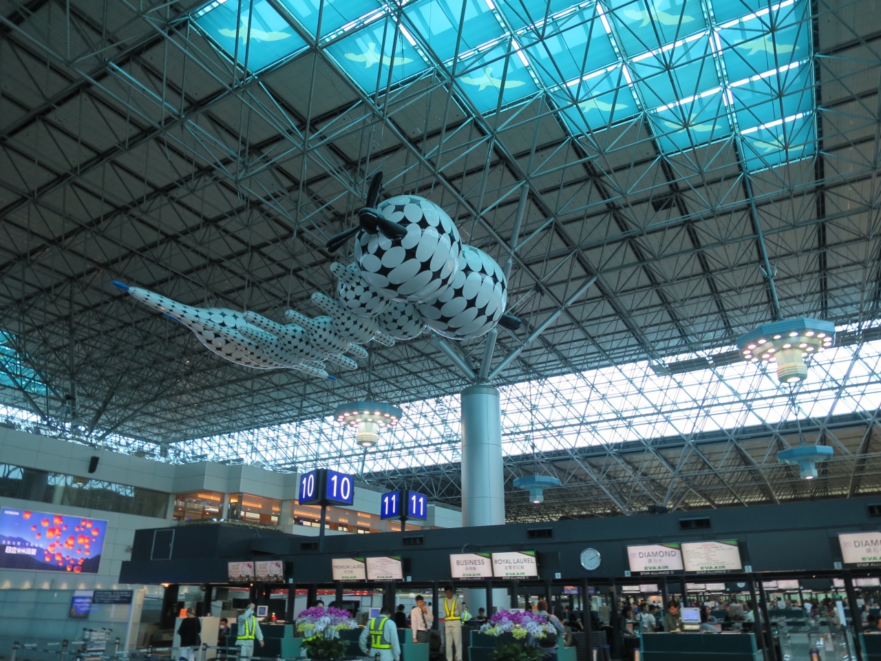 台湾の空の玄関口となる空港です。2つのターミナルがあり私が利用したエバー航空は第2ターミナルの利用でした。ターミナルビルは広々としていて天井も高く清潔で、適度な規模なので巨大空港のように延々と搭乗口まで歩くようなこともなく便利です。