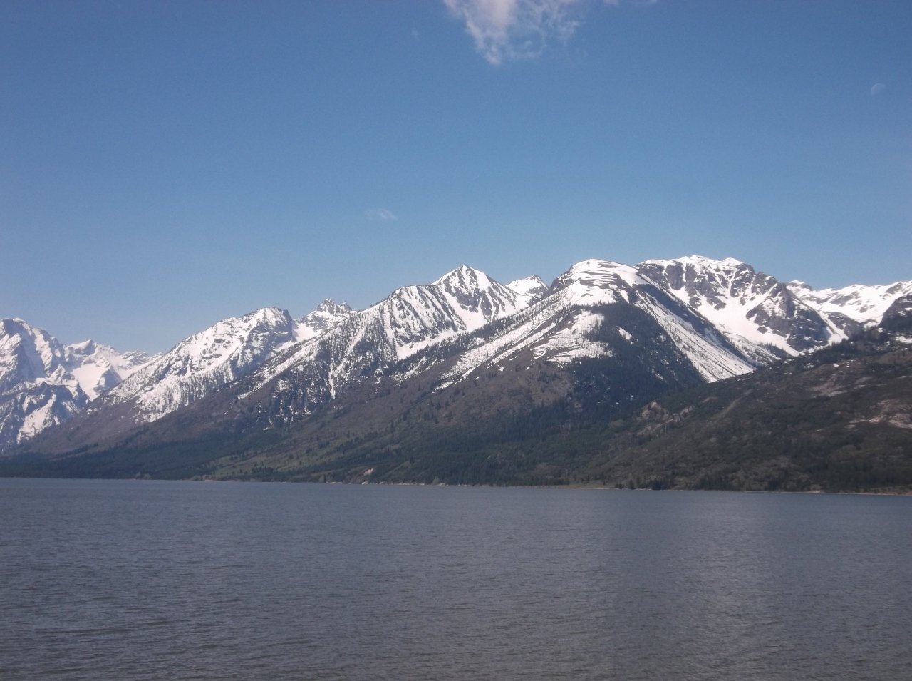 30マイルくらい走るとティトンの山々が見えてくるとすぐにジャクソンレイクに着きました。