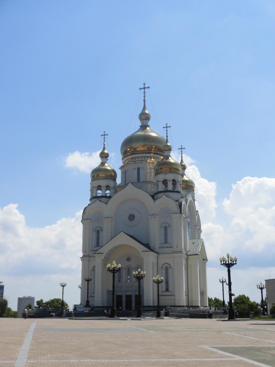観光の中心となるムラヴィヨフ・アムールスキー公園から丘をおり、丘を登ったところにあります。非常に目立つ美しい教会です。2003年に建てられてというだけあって、中に入っても、まだ新しい感じがします。