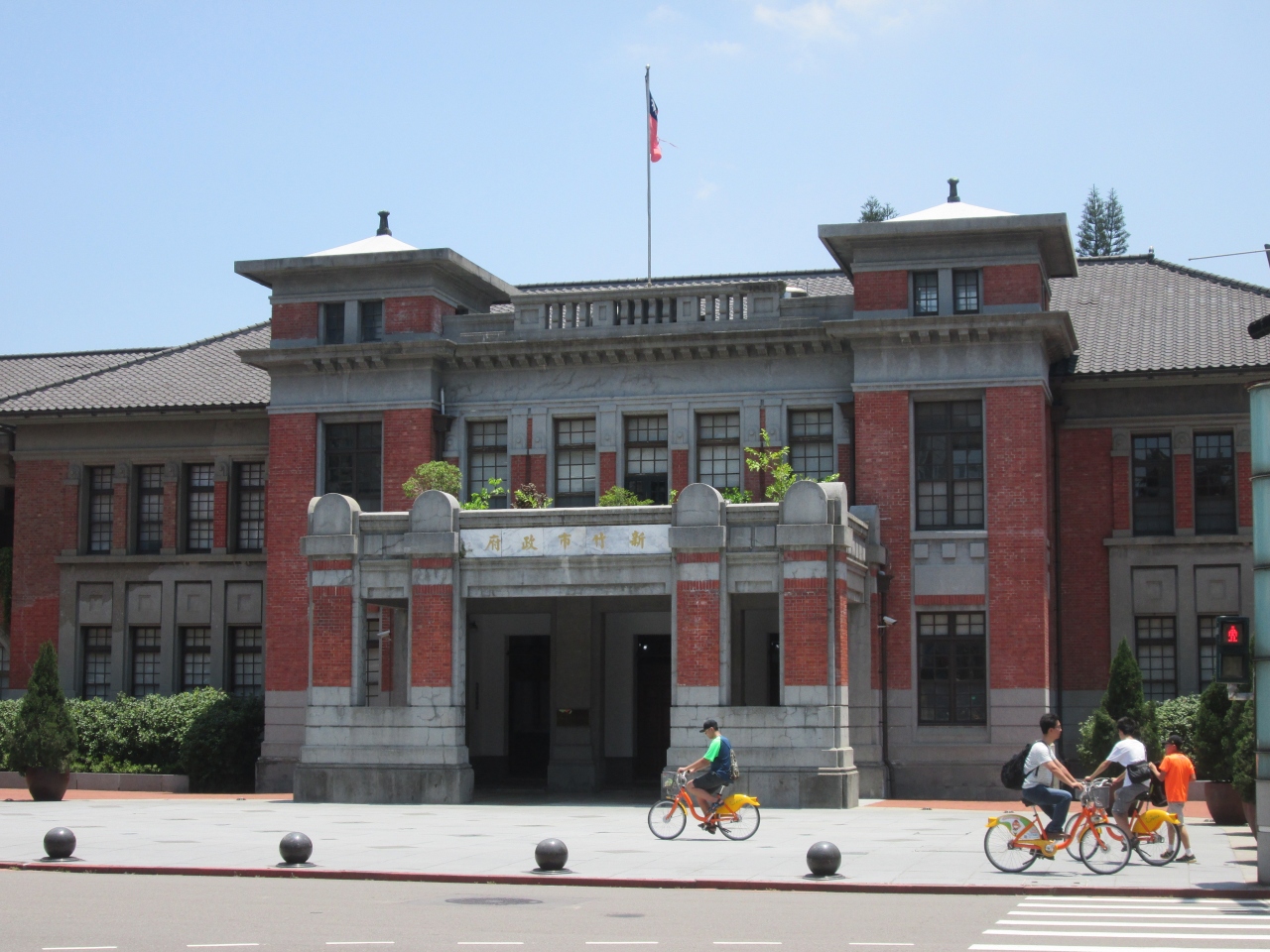 新竹市街の中心、中正路と中山路が交差する場所にあります、城隍廟から中山路を歩いて突き当たりにある固定古積になっている建物です、和と洋が混ざった建築形式、玄関はダブル柱式ポーチ、ロビー内の洋式アーケードトローマ式柱が立派です。