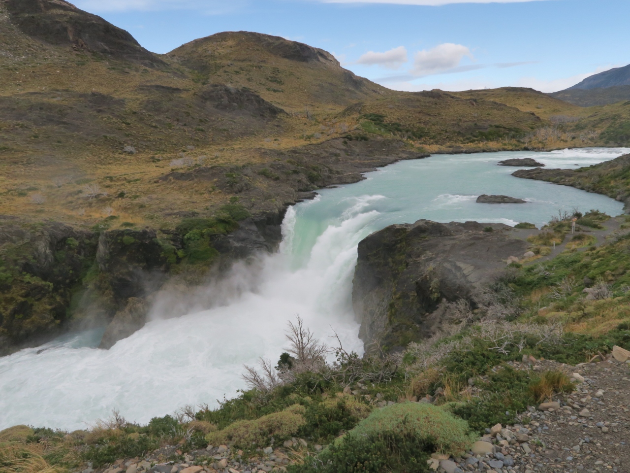 サルト・グランデは規模の割には水量が多く迫力のある滝で、パイネ・グランデ山とクエルノス・デル・パイネ(パイネの角)のビューポイントでもあります。