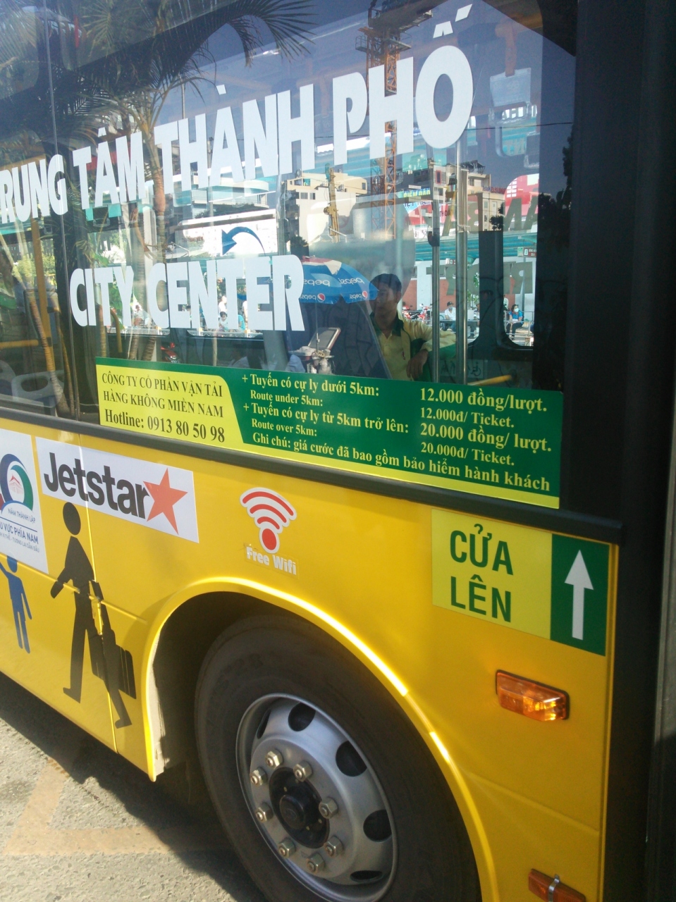 早朝バスでベンタイン市場まで20分ほど。混雑時は、40分位かかります。
