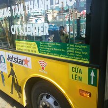 空港からは、バス乗り場で係員がチケットを販売しています。バスが出発したら運転手がチケットを破って、チェックを受けて確認してくれます。