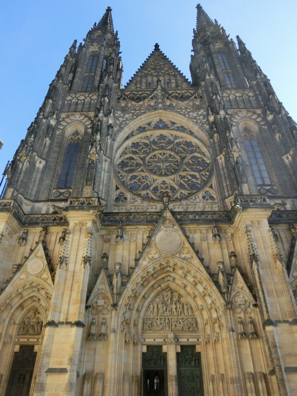 プラハ城のハイライトといえる大聖堂です。第2の中庭をぬけ第3の中庭に入るとすぐ出てくる威容は、駅前にそびえたつケルン大聖堂のような唐突なインパクトがあります。