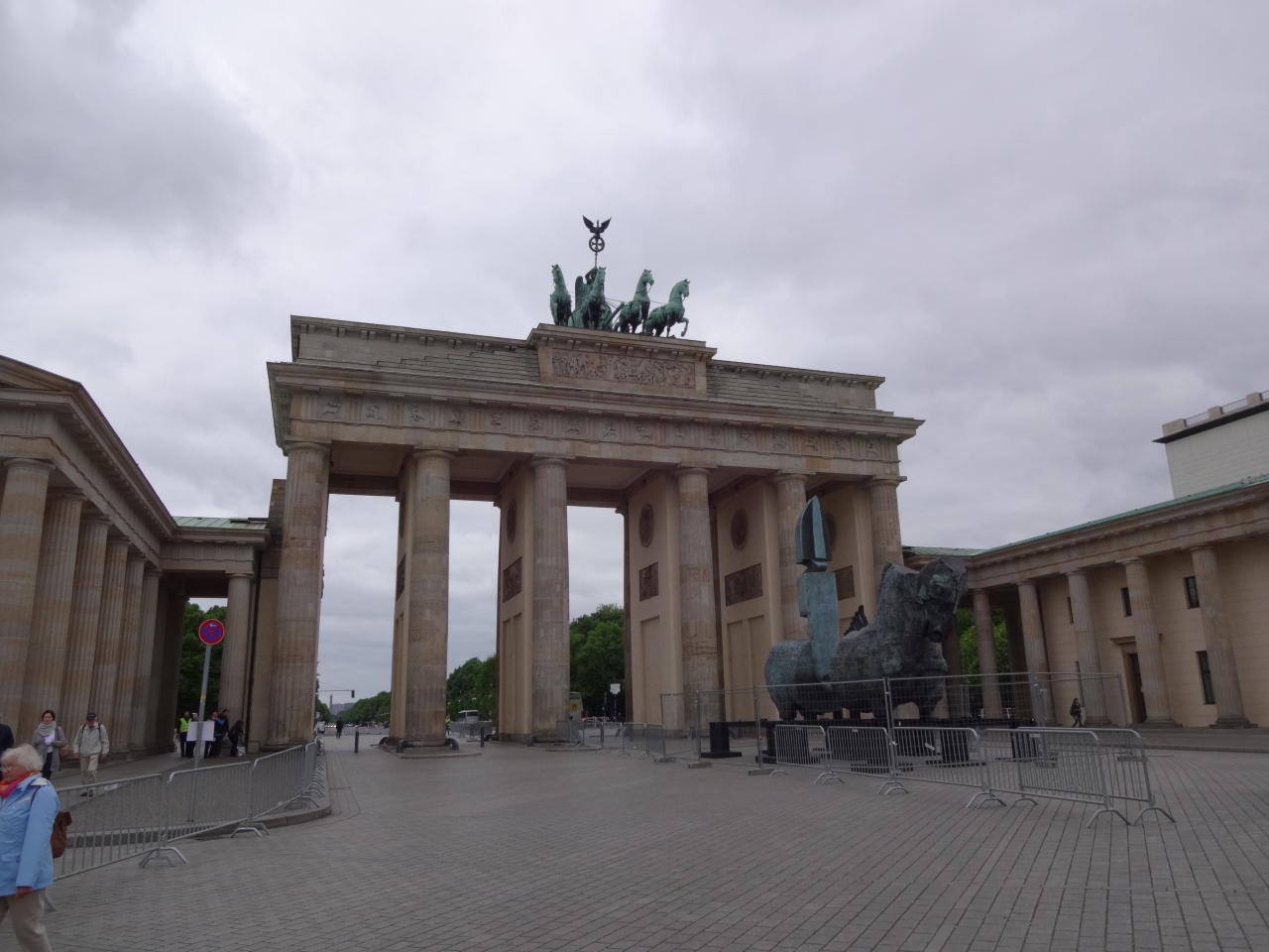 このブランデンブルク門Brandenburger Torは、18世紀後半に建てられ、途中、門の上の勝利の女神をナポレオンに持去られ、20数年前までは「分断の象徴」と呼ばれていたそうだが、今では分断ではなく統一を感じられる門。ホテルの目の前にあったので、夜のライトアップが美しかった。