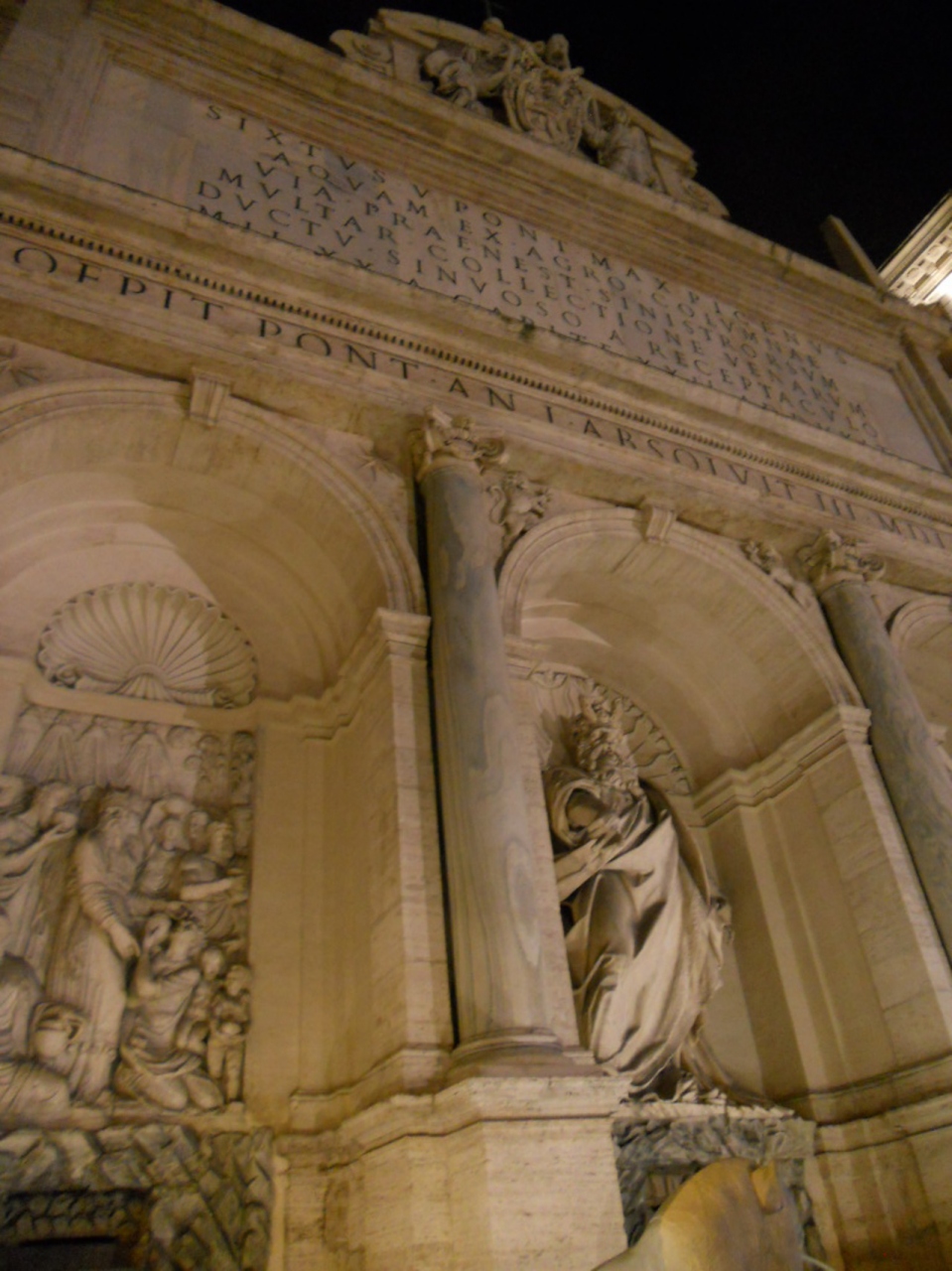 夜に、バルベリーニ広場の方からテルミニ駅に戻る時に見つけました。とても立派な噴水に見えましたが、周りにほとんど観光客がいなかったので、どちらかと言うとマイナーな噴水なのでしょうか。大きな噴水なので、すぐそばからだと、噴水全体を1枚の写真に収めるのは難しいです。