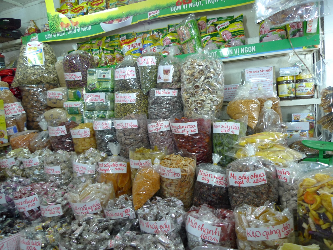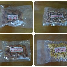 蓮の実が100g 22,000ドンとダントツ安く、ナッツ系は30,000~35,000ドンとほぼ同じ。