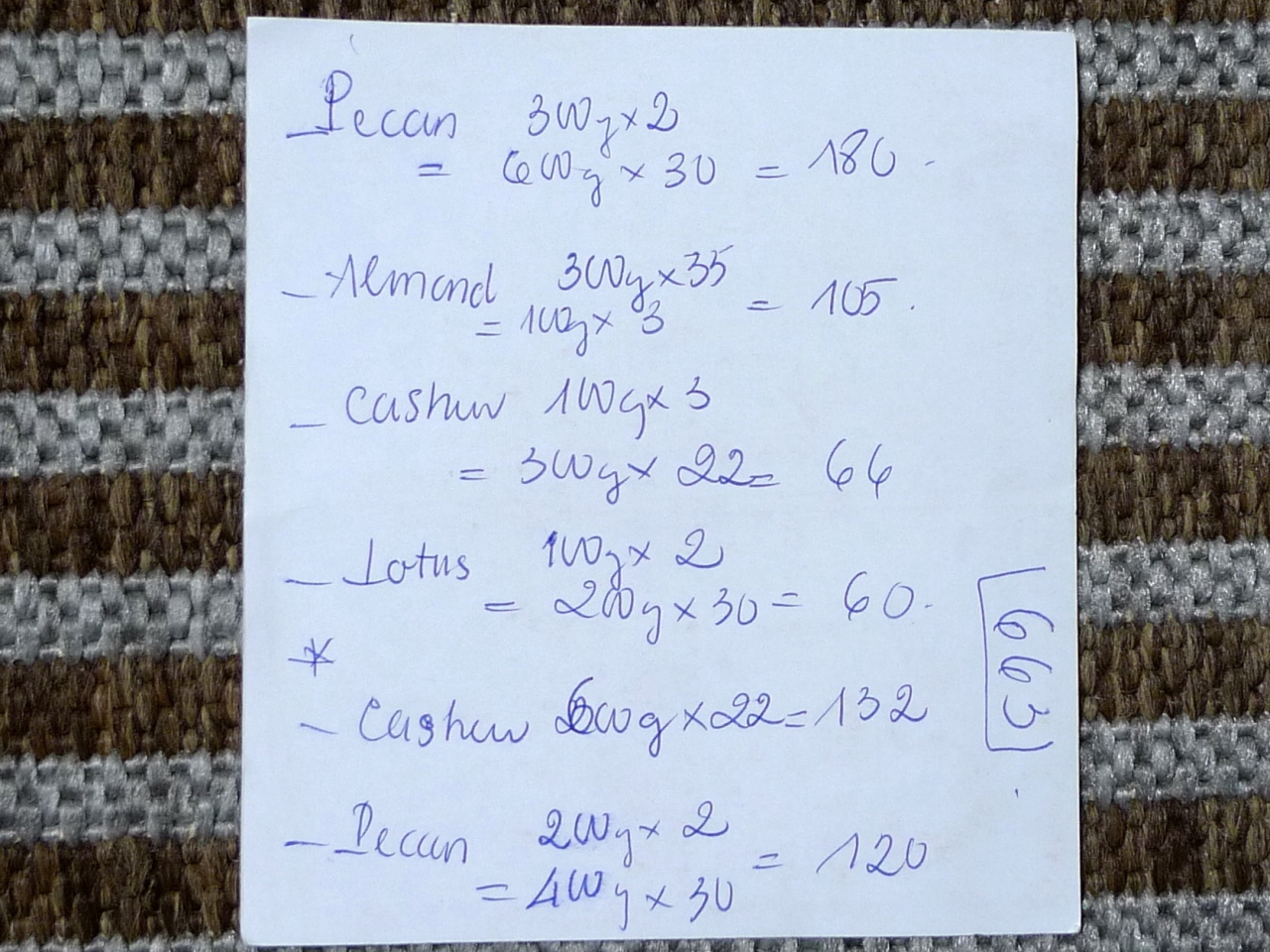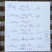【くるみ 30,000D×10、カシューナッツ 22,000D×9、アーモンド 35,000D×3、ロータス 30,000D×2】