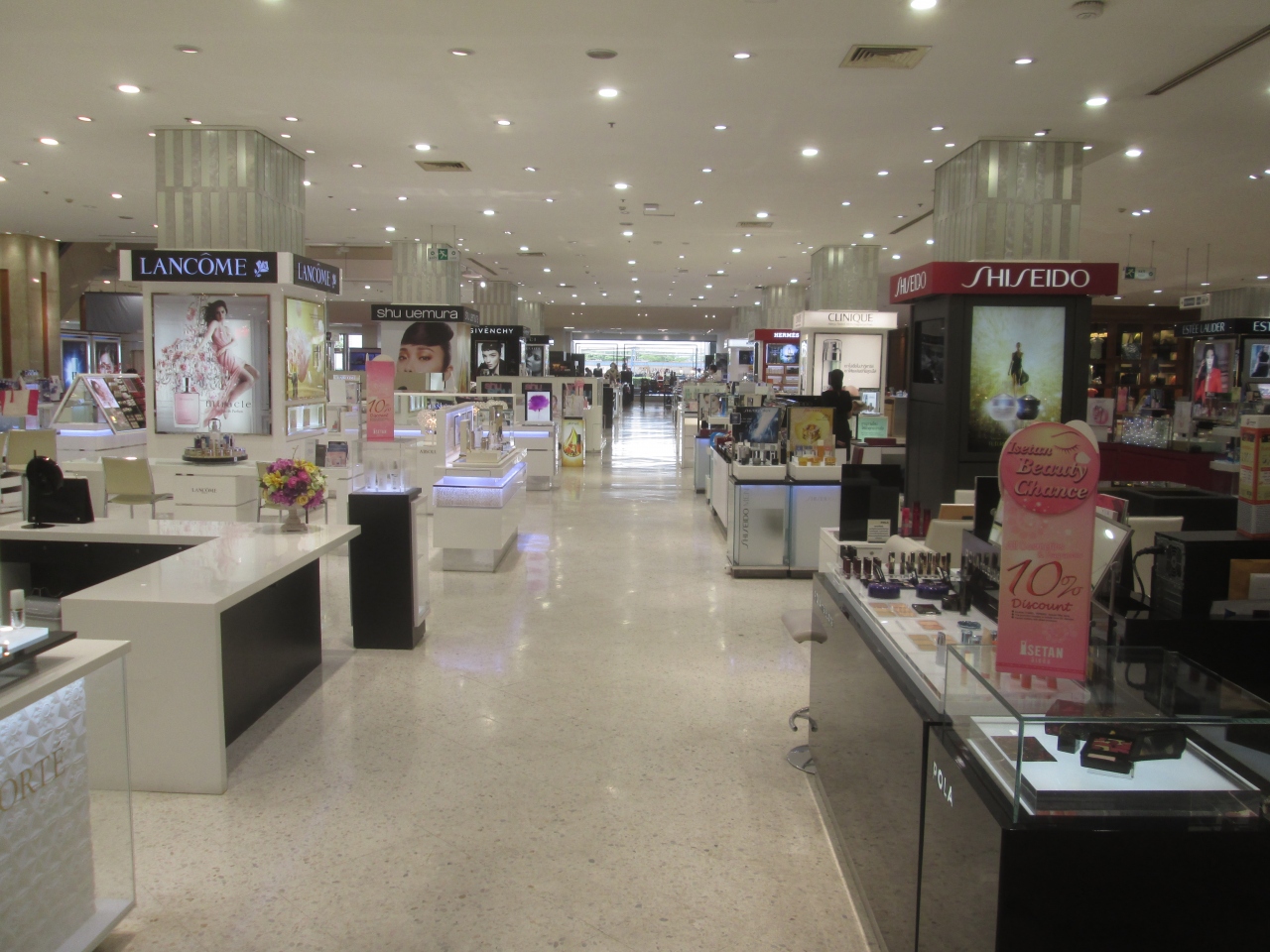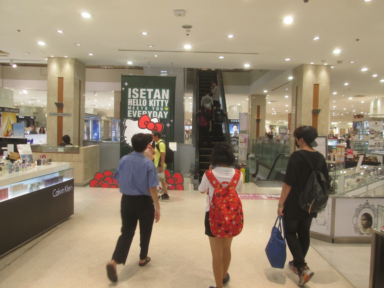 1階は日本のデパートと同様、女性向けのコスメ店が並んでいます。一方、子供連れの家族やマダムのため、マスコットキャラクターにキティーを使い、人形を置いたり、飾りを付けたりして子供でも楽しめる店内にしています。
