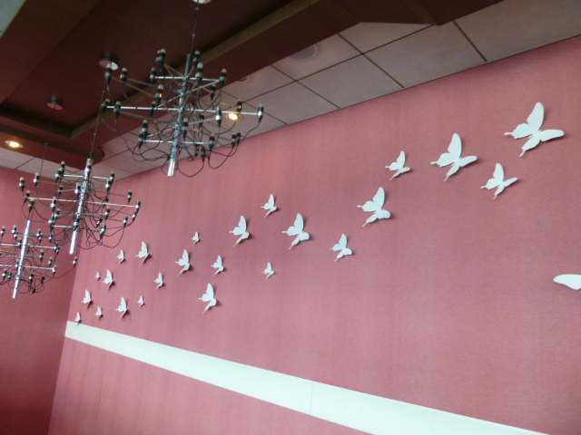 到着の空港内は蝶が!蝶のデザインだらけです。