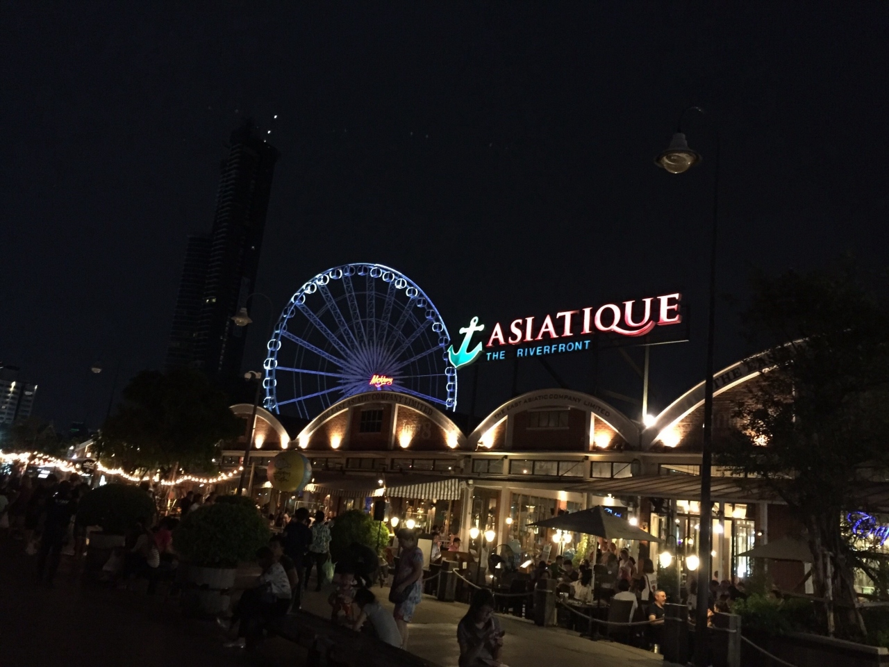 BTSのサパーンタクシン駅から無料の船で行きました。夕方にいったのですが船に乗るまで凄い人で30分程並びました。船も楽しかったです。アジアンティークリバーフロントは全体に綺麗でした。食事は高かったですが商品等は普通の値段です。広場でイベントが行われれたり少しのスペースでも演奏が有ったりと楽しかったです。