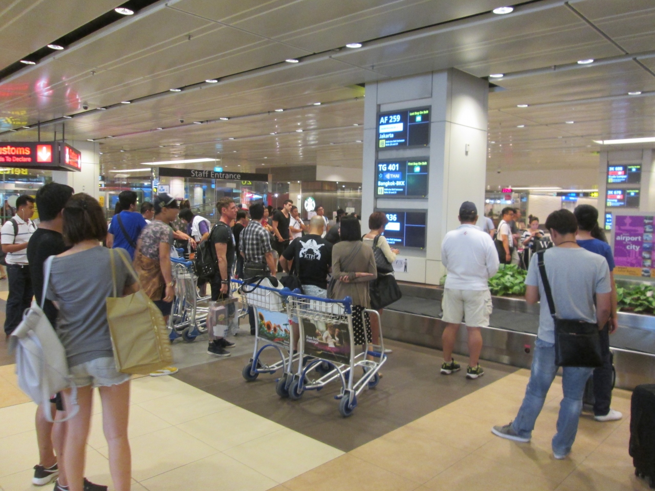 チャンギ空港に到着すると出口ゲート付近が封鎖されて異変がありました。係員によると、政府から指示で、2015年8月17日、バンコクのラチャプラソン交差点にあるエラワン祠で爆発事件が発生したことを受けて、バンコクから到着した便の搭乗者全員の荷物検査を臨時で実施しているようです。