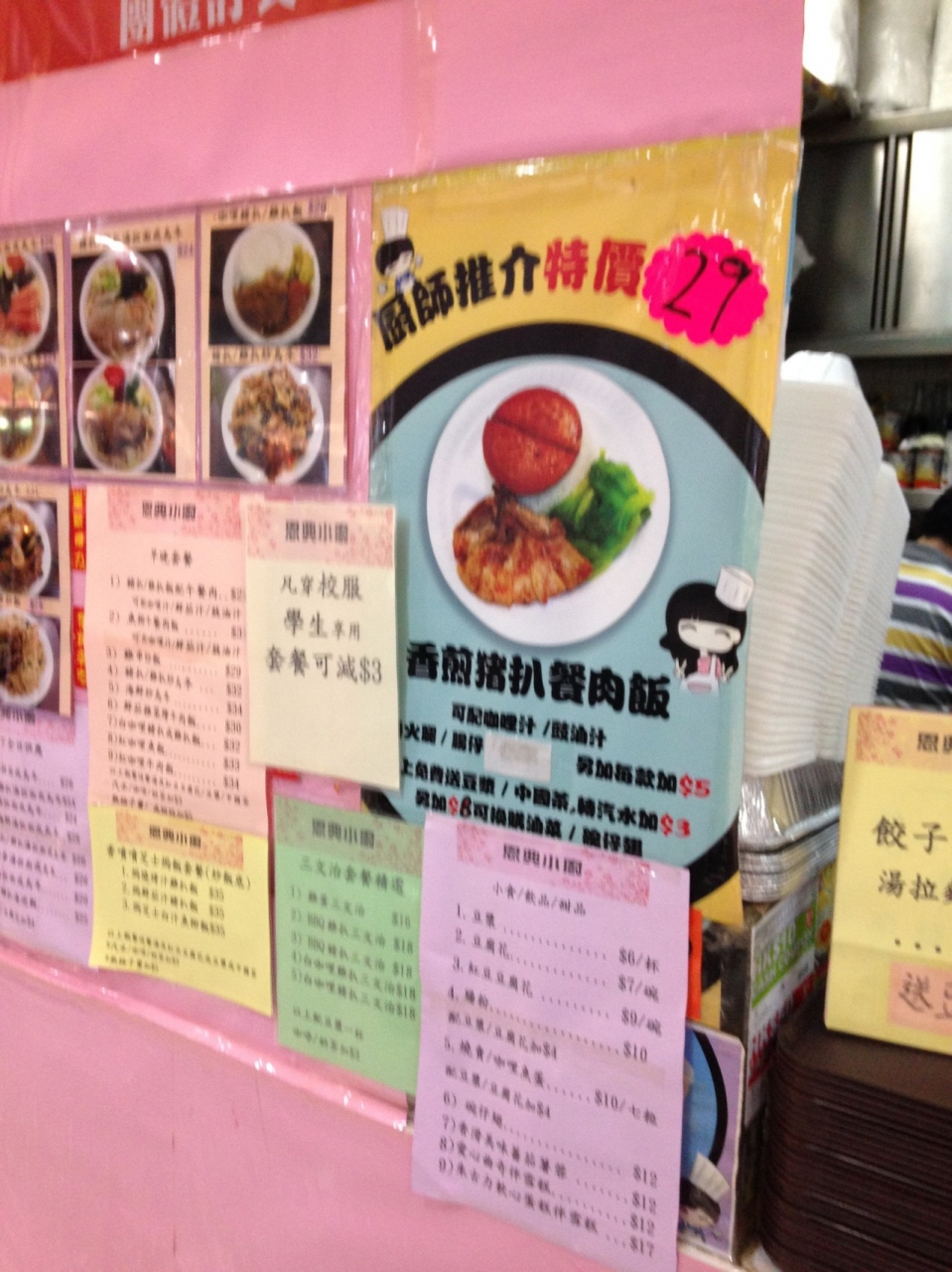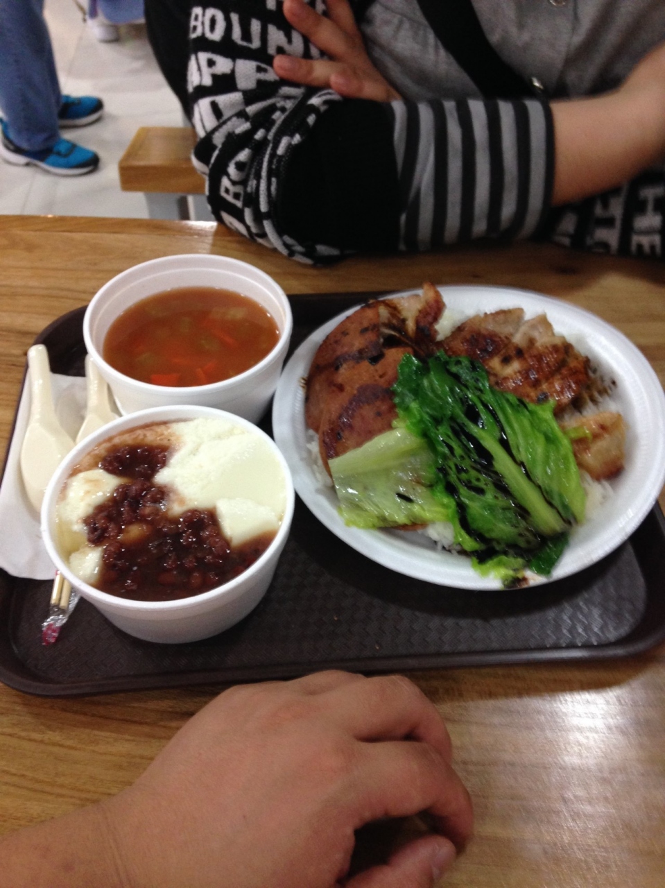 なんと29H$です。内容は、ご飯に、骨付き肉のソテー、ランチョンミートのソテー、レタスの湯引き、スープ、お豆腐のデザートです。