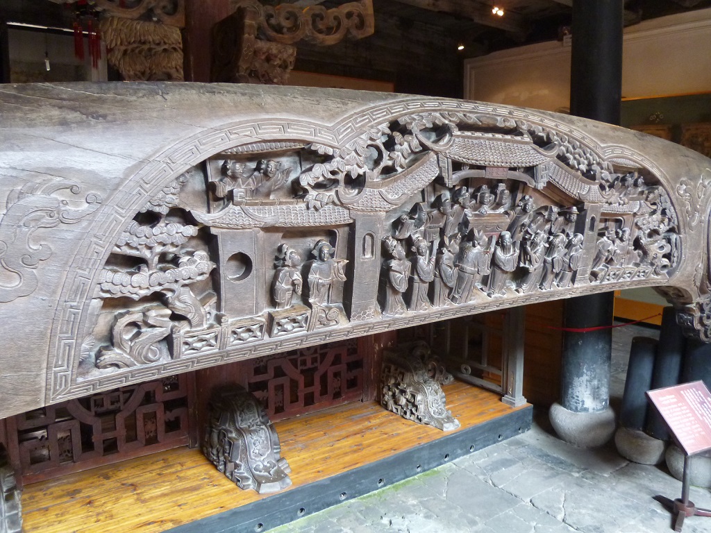 烏鎮東地区の主要観光スポットの一つで、中国江南地方の歴史建築を特徴づける梁や肘木に施された木彫りの彫刻を集めて展示している博物館です。展示物もさることながら、展示しているこの建物そのものも天井に目をやると精緻な彫刻の施された梁が目に飛び込んできます。