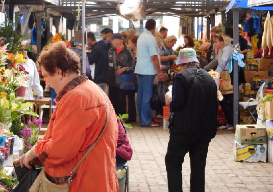 中央の屋内施設では生鮮食品も購入出来、クレジットカードを利用できるお店も多いです。(外の露店商は現金のみです)