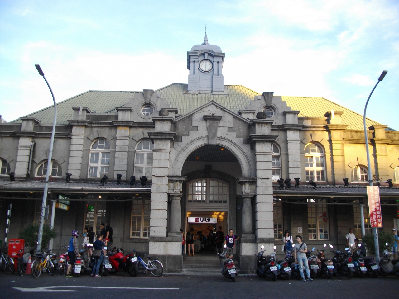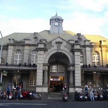設計師の夫が大興奮していました。わざわざバイクで戻って写真を撮り直しました。台湾で、こんなに古い建物を綺麗に保存した駅は少ないと思います。時計塔があるのと窓の形がとても素敵です。駅前はロータリーになっていて信号が複雑です、気をつけて渡ってください。
