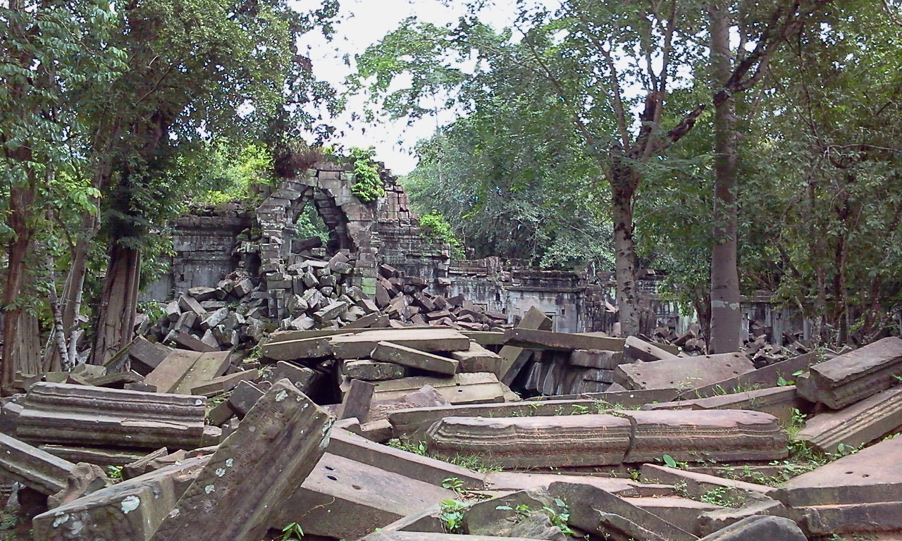 シェムリアップから半日ツアーで行きました。未舗装の道路も通りながらベンメリアに行きます。現在も崩壊が進行中の遺跡は美しく蒸し暑いジャングルの中に修復されぬままに石が転がっています。かつての姿を想像しながら大自然の力を感じることができます。