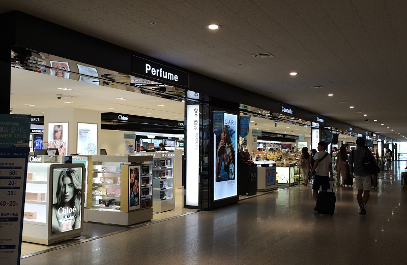 規模は小さく、香水や化粧品など免税店の定番商品が主で品ぞろえも限られている感じがしました。