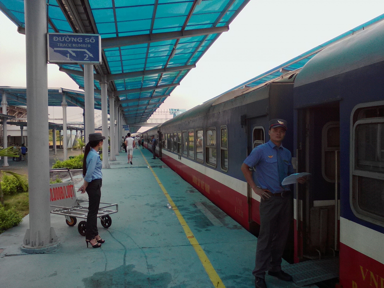 最近建てられたようで新しく何とも現代的で無機質な印象。鉄道利用する人は少ないのかガランとして寂しいところです。しかし列車の時刻や座席の種類による料金もわかりやすく表示されておりそのあたりはちゃんとしていました。駅前にはホテルの客引きやタクシーが待ち構えているのでそれらを利用する方には便利だと思います。旧ニンビン駅舎は現在おしゃれなホテルとして利用されています。