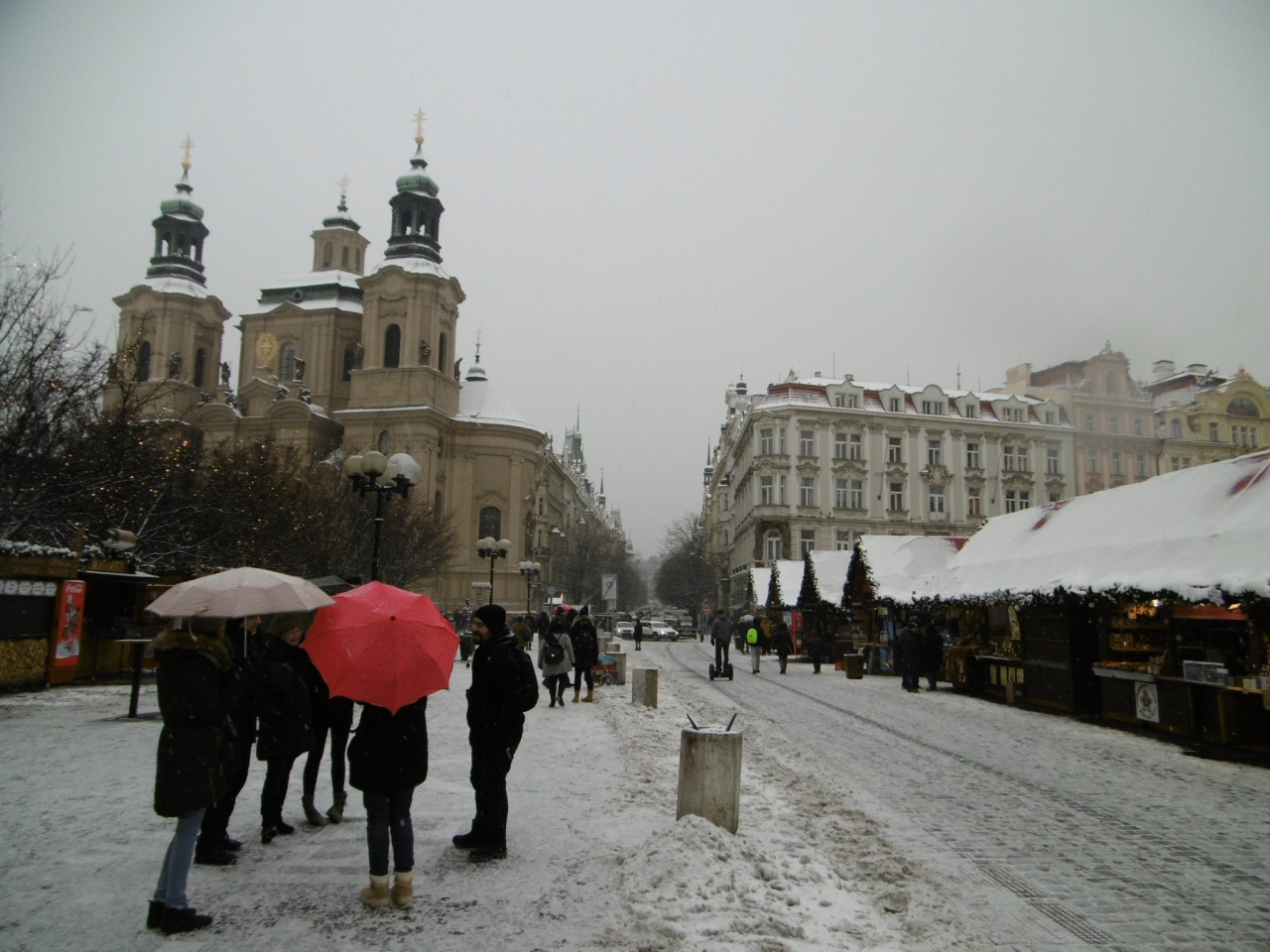 「聖ミクラーシュ教会」は旧市街広場にあった。もう一つはマラーストラナ広場にある。広場からの景色が素晴らしい。クリスマスマーケットで広場らしさは感じられないのだが、期間限定ものであってラッキー。外観はきれいだった。