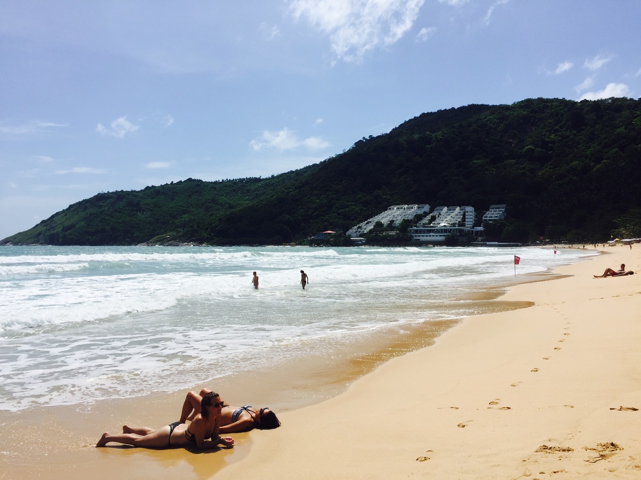 レイニーシーズンだからか、波がとても高く、ノースイムヒアの旗が立っていました。殆どの人が海辺でゴロゴロしているだけです。監視員もいましたが、無視して、サーフィンをしている人もいました。人は結構いました。