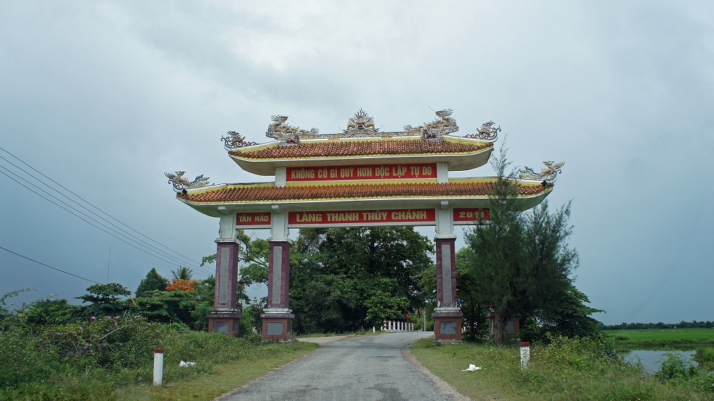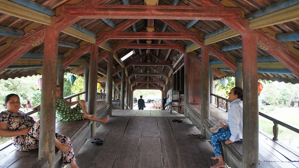 フエの市内から車で20分くらい、自転車ではゆっくり行ったら40分くらいかかるのではないでしょうか。ただ、途中からの田園風景はあまりに美しいのでゆっくり走ったほうが良いと思います。日本の情報ではタイントアン橋だけしか紹介されていませんが、ボートに乗ったり、ノン・ラー作リ体験が出来たり、周辺に寺院があったり半日くらいかけて行っても良いと思います。