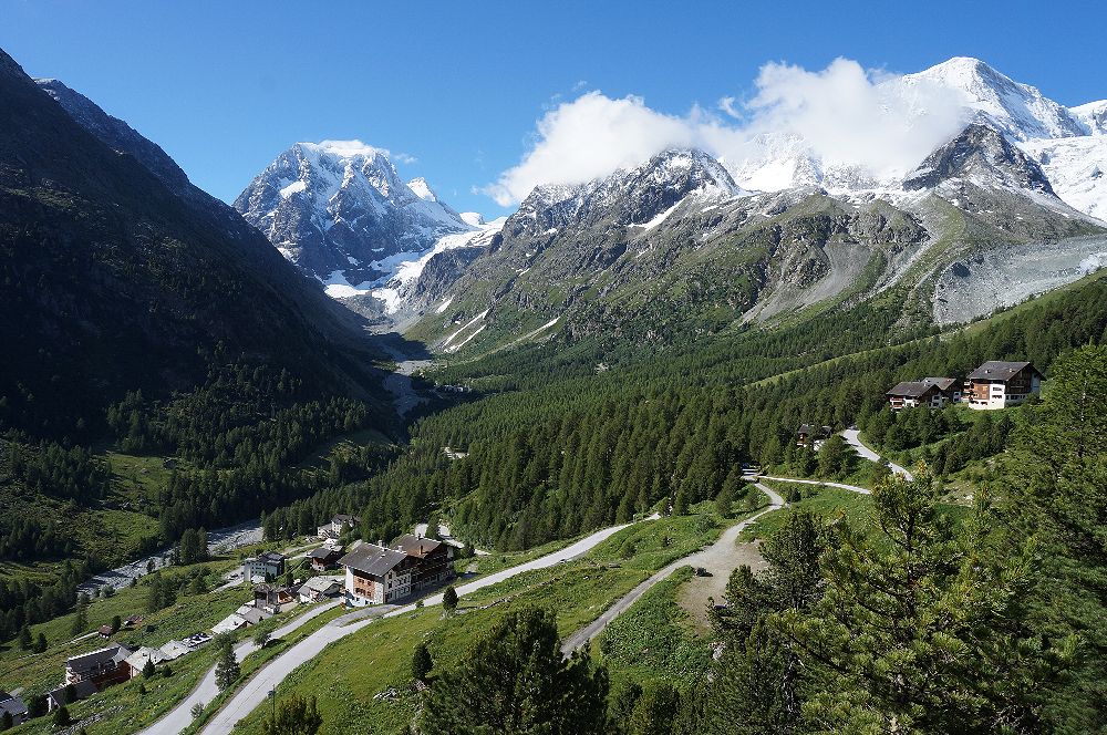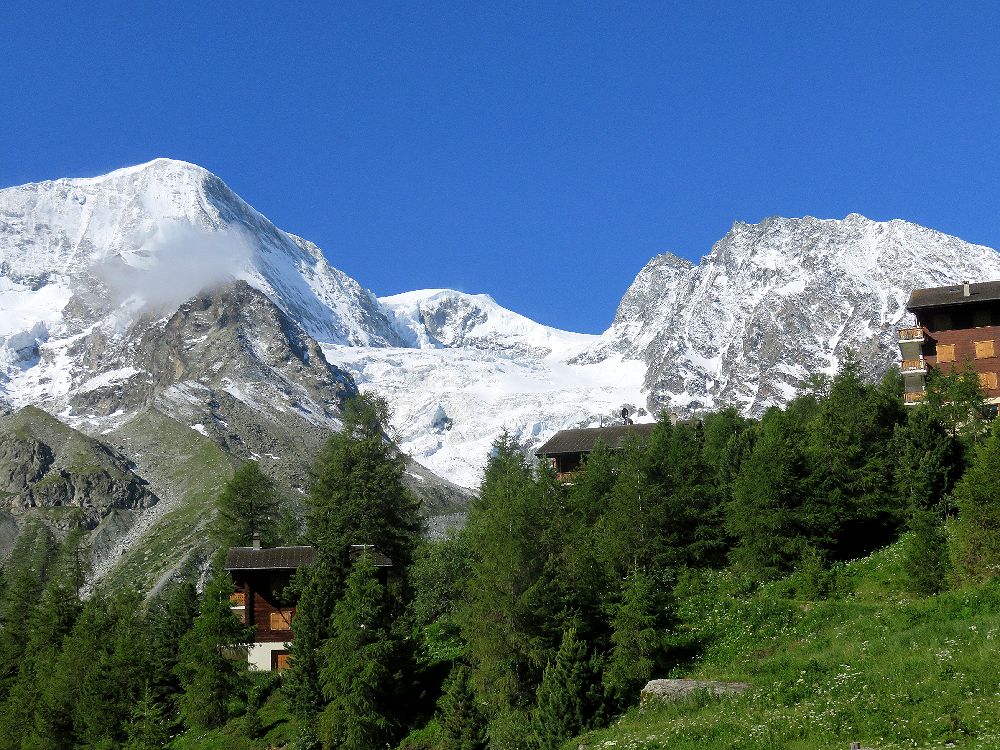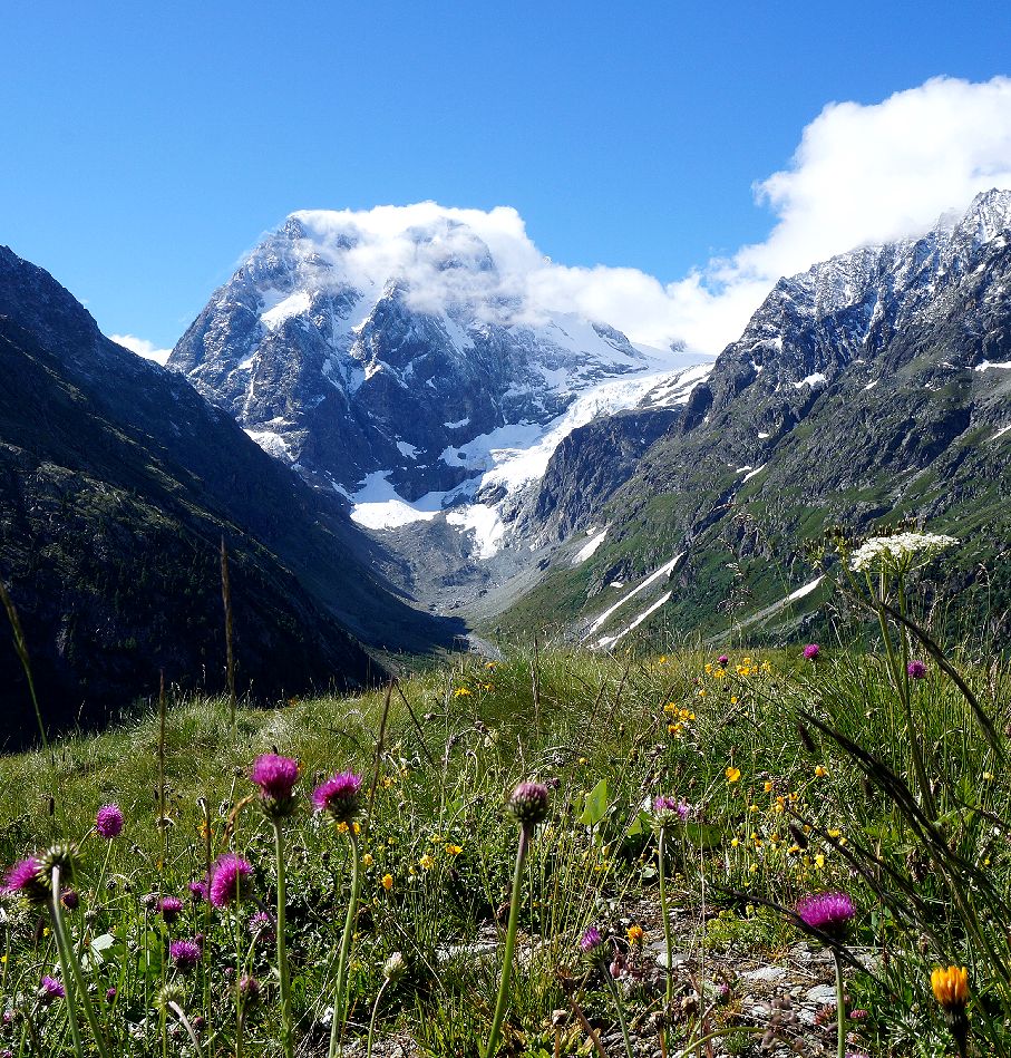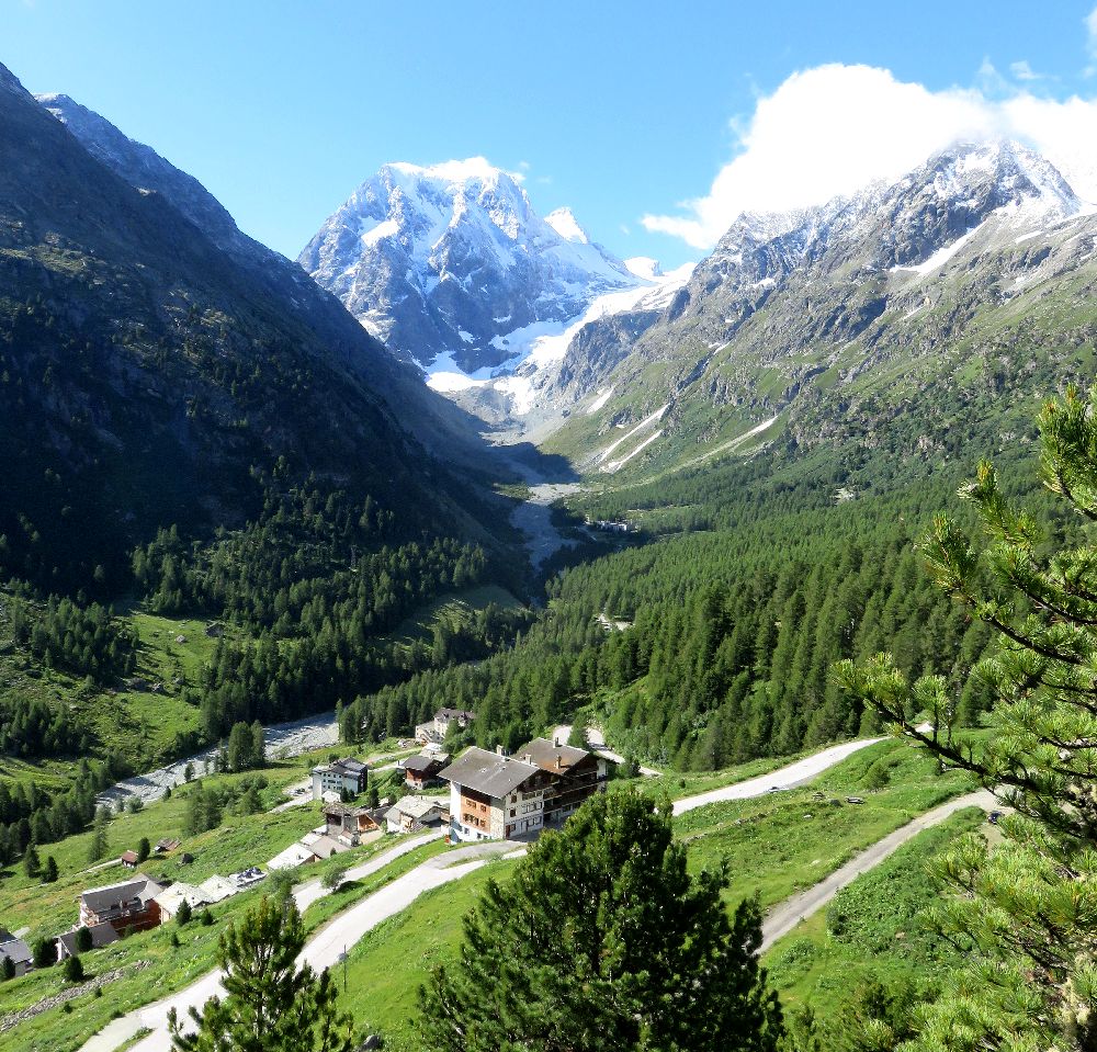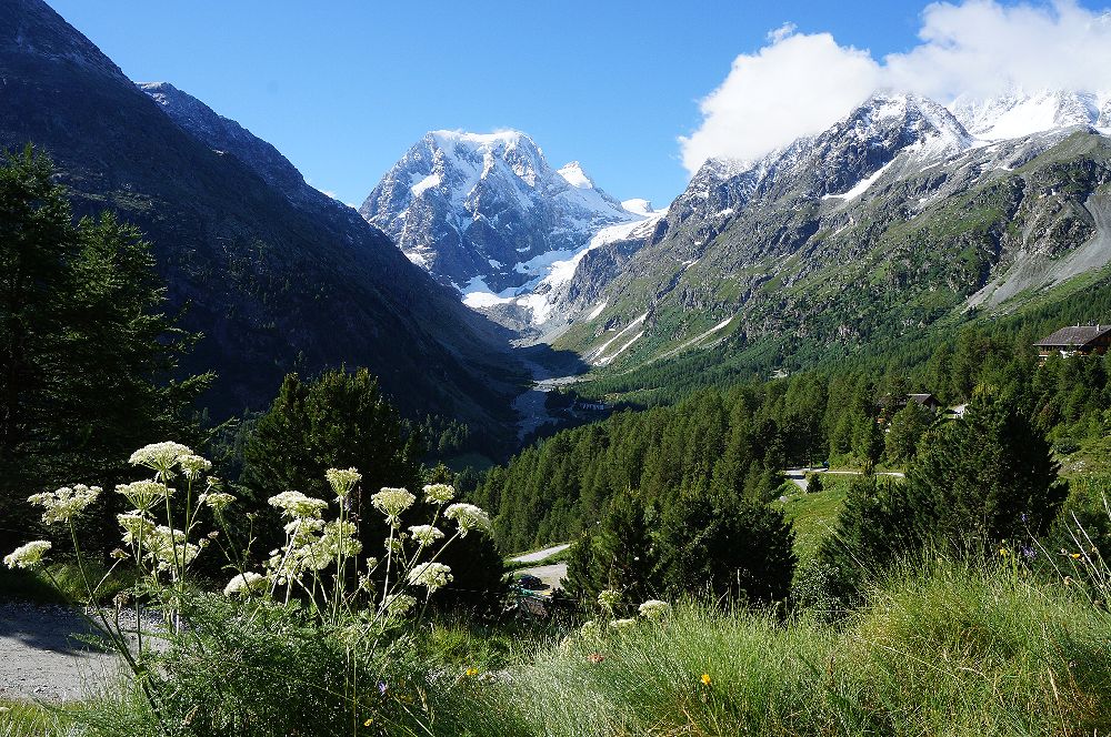 アローラは、スイス南部のヴァレー州、エランの谷の最奥にあり、標高2000mにあるこじんまりとしたリゾートです。シオンのスイス国鉄駅からバスや車で1時間で行くことができます。付近には手つかずの自然が残っていて、夏はトレッキング、冬はスキーを楽しむことができます。私達は手前のエヴォレーヌに宿をとり、レンタカーでアローラに行き、村の上にある駐車場に車を止めて、往復3時間のトレッキングを楽しみました。朝早いうちはよく晴れていて、モンコロンやお花畑を十分に満喫しました。アローラにはモンコロンが目の前に見える絶景の地に建つホテルが数件あります。バス便が少ないので、バスで来る人は時間の余裕をもって訪れる必要があります。