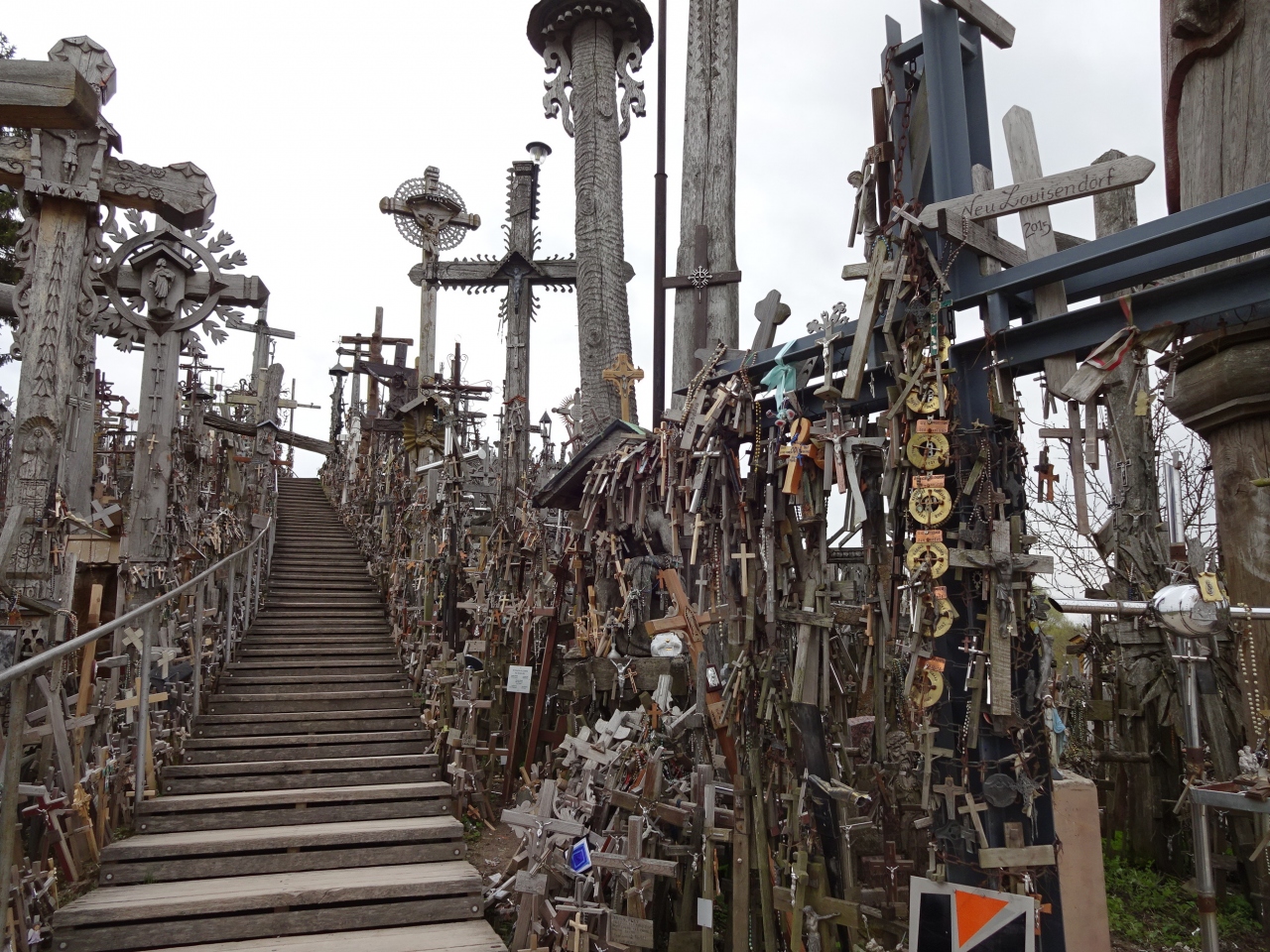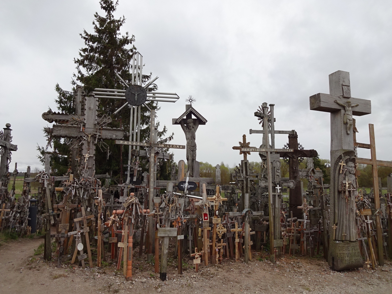 シャウレイ観光をバス乗り継ぎの間に済ませるために、丘の見学の全体の所要時間を知りたい方も多いと思います。シャウレイのバスターミナルから出発して戻ってくるまでの所要時間は、私の場合は3時間強でした。丘のツーリストインフォメーションで30分くらい休憩したし、丘からバス停までは強い風雨のため後ろ向きに歩いて戻ったので時間がかかりました。普通なら2時間程でいけると思います。ジョギングが嫌いじゃない人ならバス停から丘までは走ってもいいと思います。ずーっと景色の変わらない直線なので、私もわーっと走りたくなりました。