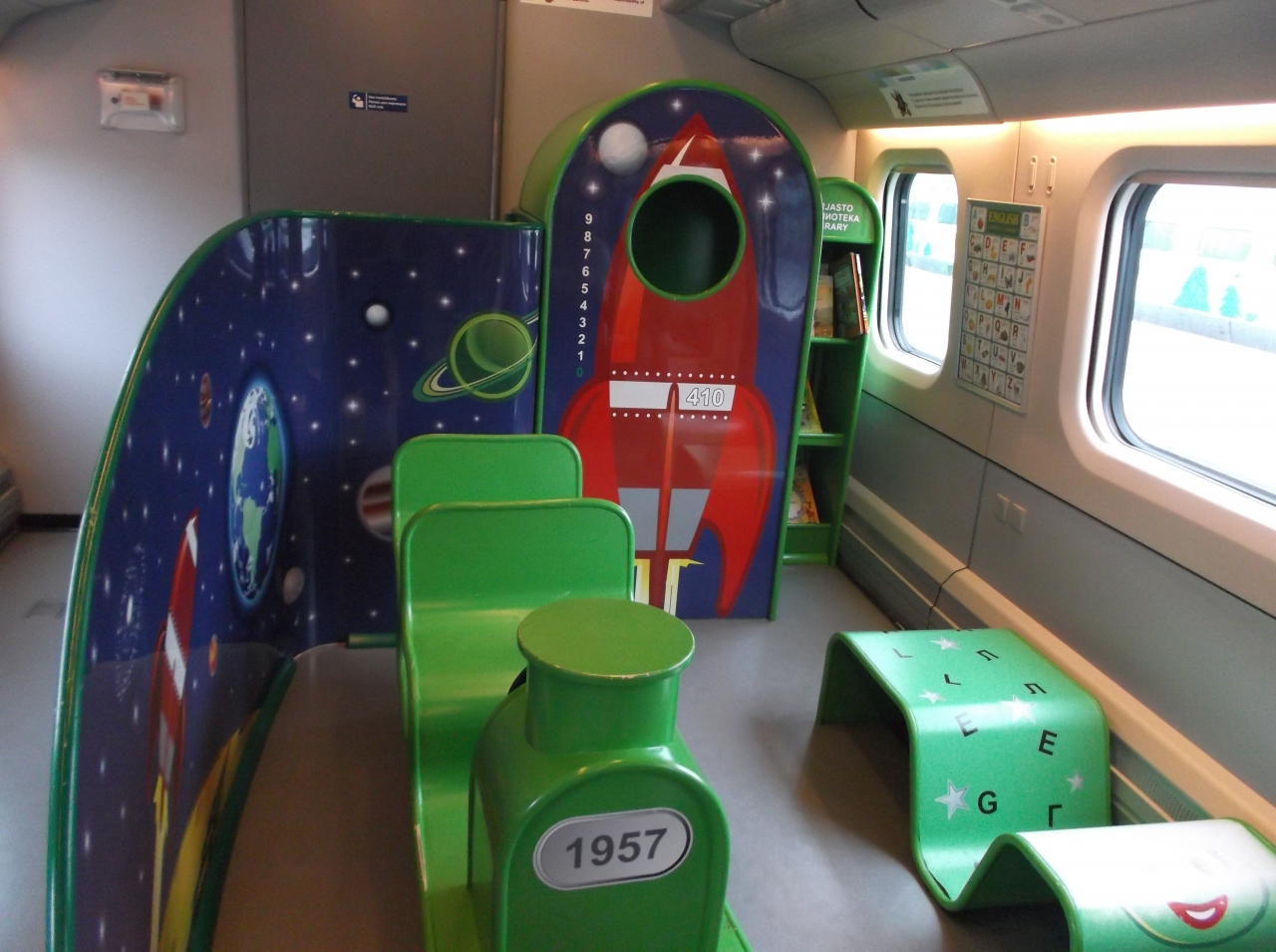 そんなこんなで、3時間半もすぐにすぎてしまいました。 列車は乗り心地も良く、先頭車両には、キッズスペースもありました。