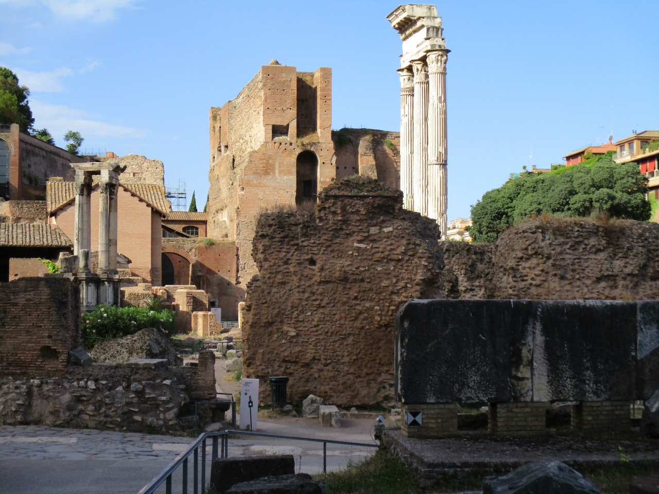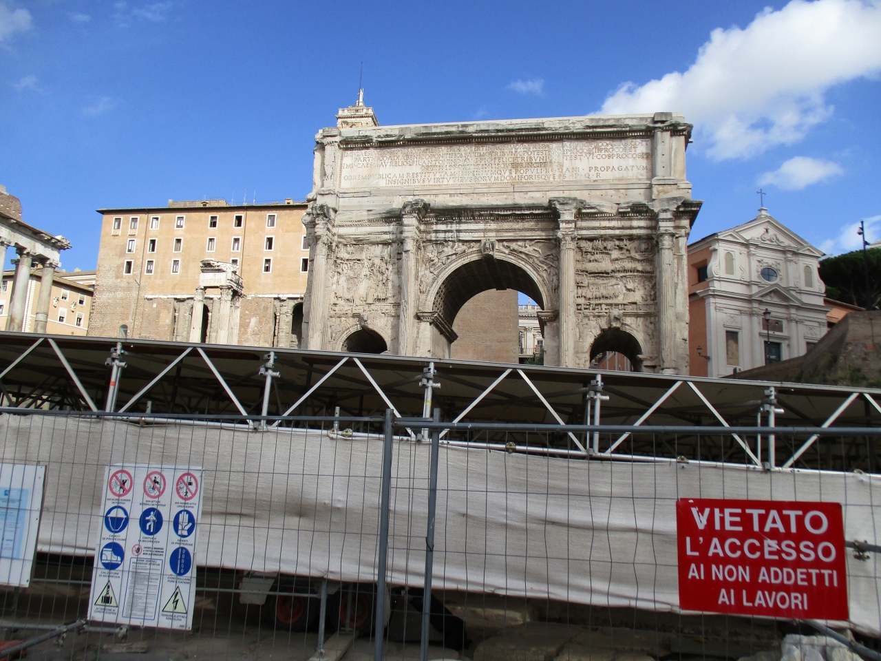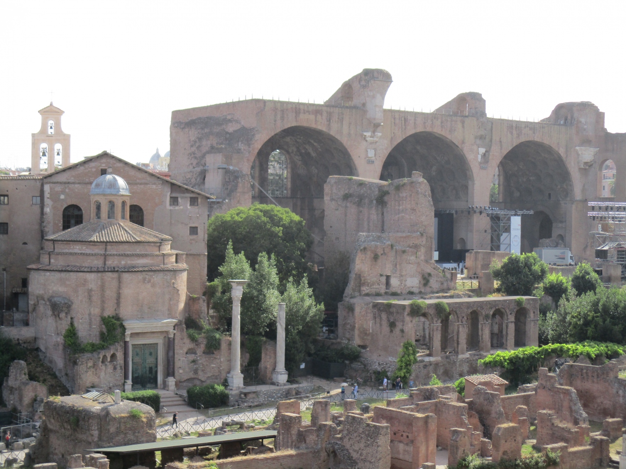 古代ローマ時代に政治、経済、宗教の施設が集中していた場所、多くが破壊されてしまいましたが、かつての偉大さと栄光が想像できます。南側のパラティーノの丘に登ると、壮大なフォロ ロマーノの全体を俯瞰することができます。入場券はパラティーノの丘、コロッセオと共通ですが、フォロ ロマーノの売場の方がはるかにすいていますので、先にこちらから見学する方がよいと思います。朝8時半の開門に合わせて行ったのでそれ程混雑していませんでしたが、コロッセオ見学後にみた時は多くの観光客が訪れていました。日差しを遮る建物がなく、スロープ・階段もあるので、体力の消耗を覚悟する必要があるでしょう。また、コロッセオに近いティトゥスの凱旋門手前の入口からは外に出ることができませんので、注意が必要です。