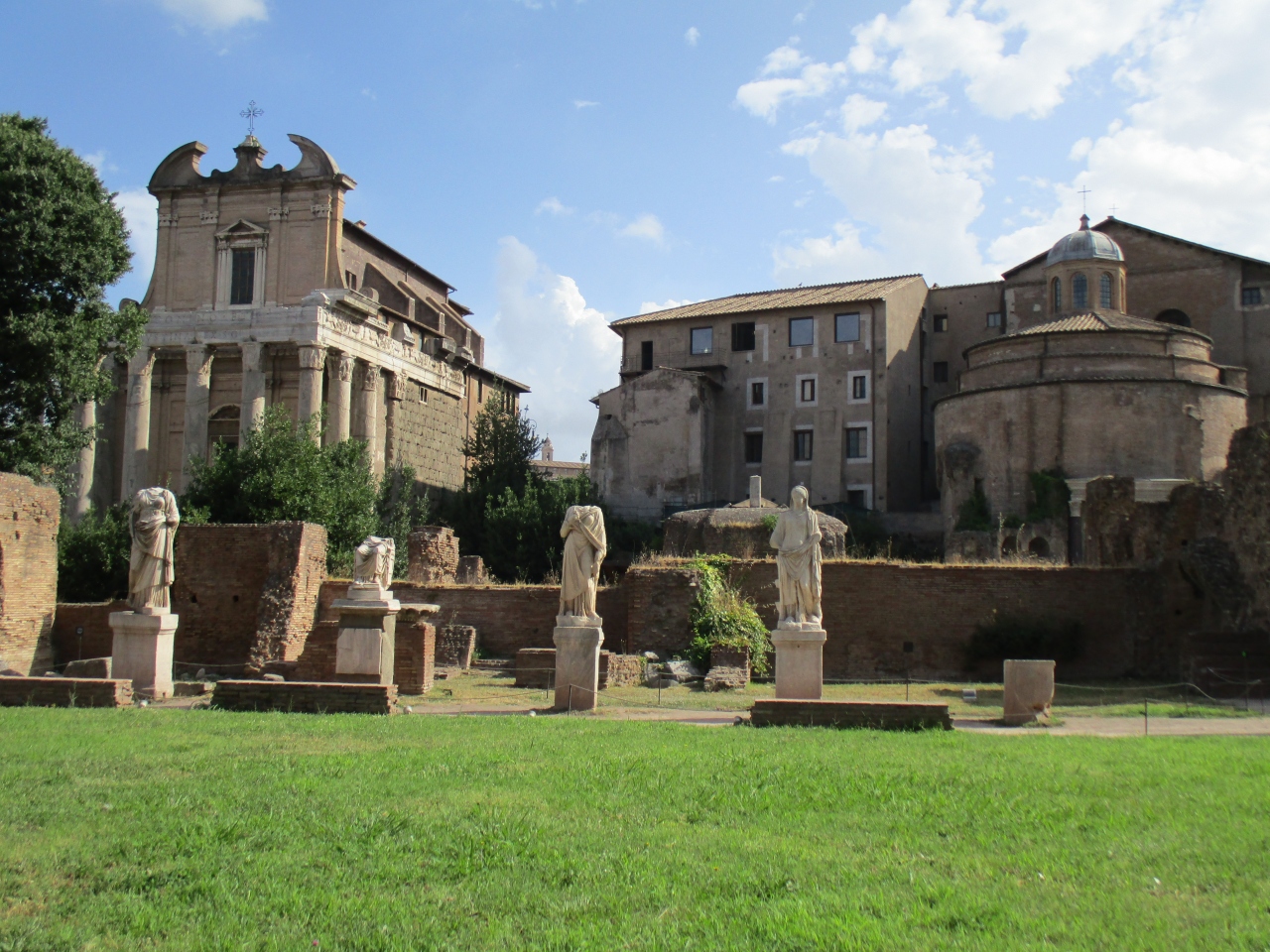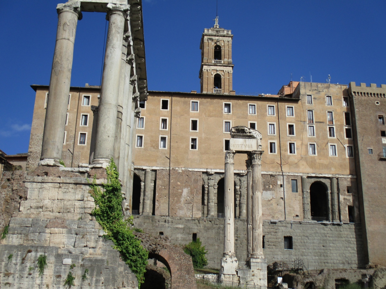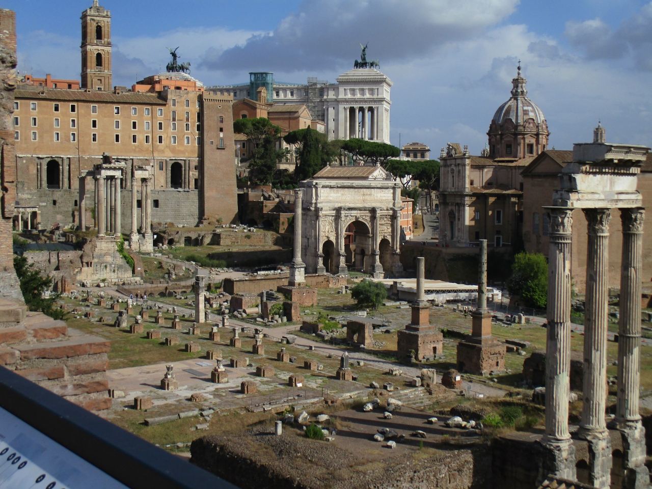 古代ローマ時代に政治、経済、宗教の施設が集中していた場所、多くが破壊されてしまいましたが、かつての偉大さと栄光が想像できます。南側のパラティーノの丘に登ると、壮大なフォロ ロマーノの全体を俯瞰することができます。入場券はパラティーノの丘、コロッセオと共通ですが、フォロ ロマーノの売場の方がはるかにすいていますので、先にこちらから見学する方がよいと思います。朝8時半の開門に合わせて行ったのでそれ程混雑していませんでしたが、コロッセオ見学後にみた時は多くの観光客が訪れていました。日差しを遮る建物がなく、スロープ・階段もあるので、体力の消耗を覚悟する必要があるでしょう。また、コロッセオに近いティトゥスの凱旋門手前の入口からは外に出ることができませんので、注意が必要です。