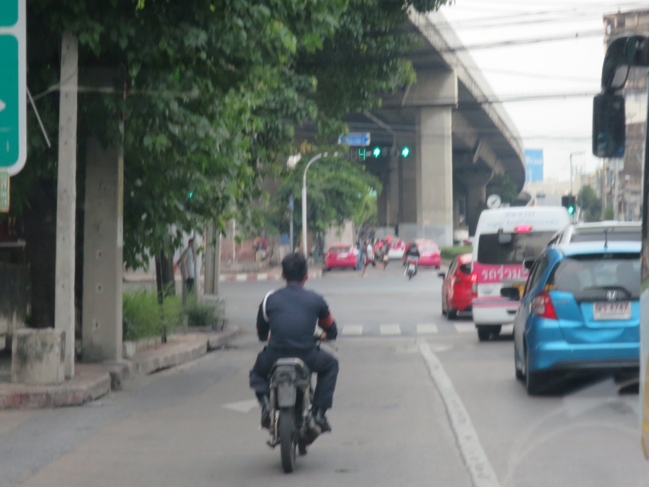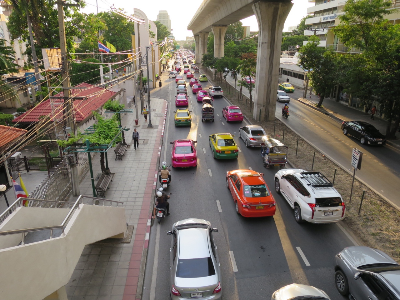 また、ラーマ1世通りを東進すると、いきなり左車線が空いてくる。 が、ここはバスレーンで一般車は走れない。