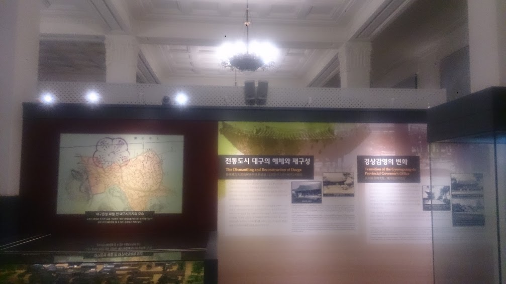 慶尚監営公園の一画にあって、かつて朝鮮殖産銀行大邱支店の建物だっただけに、石造りで風格のある重厚感たっぷりの外観、内装のため、その建物自体も非常に歴史的価値が高く、見応えがあります。建物自体は特別大きいものではないですが常設展示が1階と2階の一部で特別展示室が2階の一部になっています。パネル、映像、説明ボードとメリハリをつけて飽きが来ないように作りこまれています。特に昔のバスのモックアップに乗車するスタイルで視聴する映像展示は、その走行するバスから見える大邱の昔の風景をアニメ化したもので、大人も子供も楽しめる映像展示になっています。また、日本語での説明は少ないものの、日本語パンフレットがもらえて、これを見ながら見学すると展示の中身がわかります。