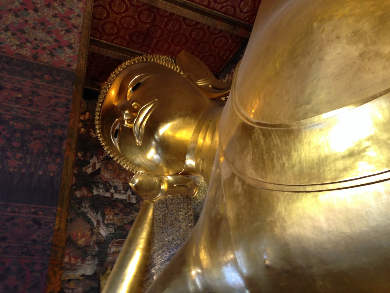 金色の大きな涅槃像に圧倒されました。しかしあまりにも観光客が多すぎて、ここがお寺だという神妙さに欠けるのが気になります。敷地内にはほかにも多くの仏像があり、心を落ち着けてお参りできる場所もあります。