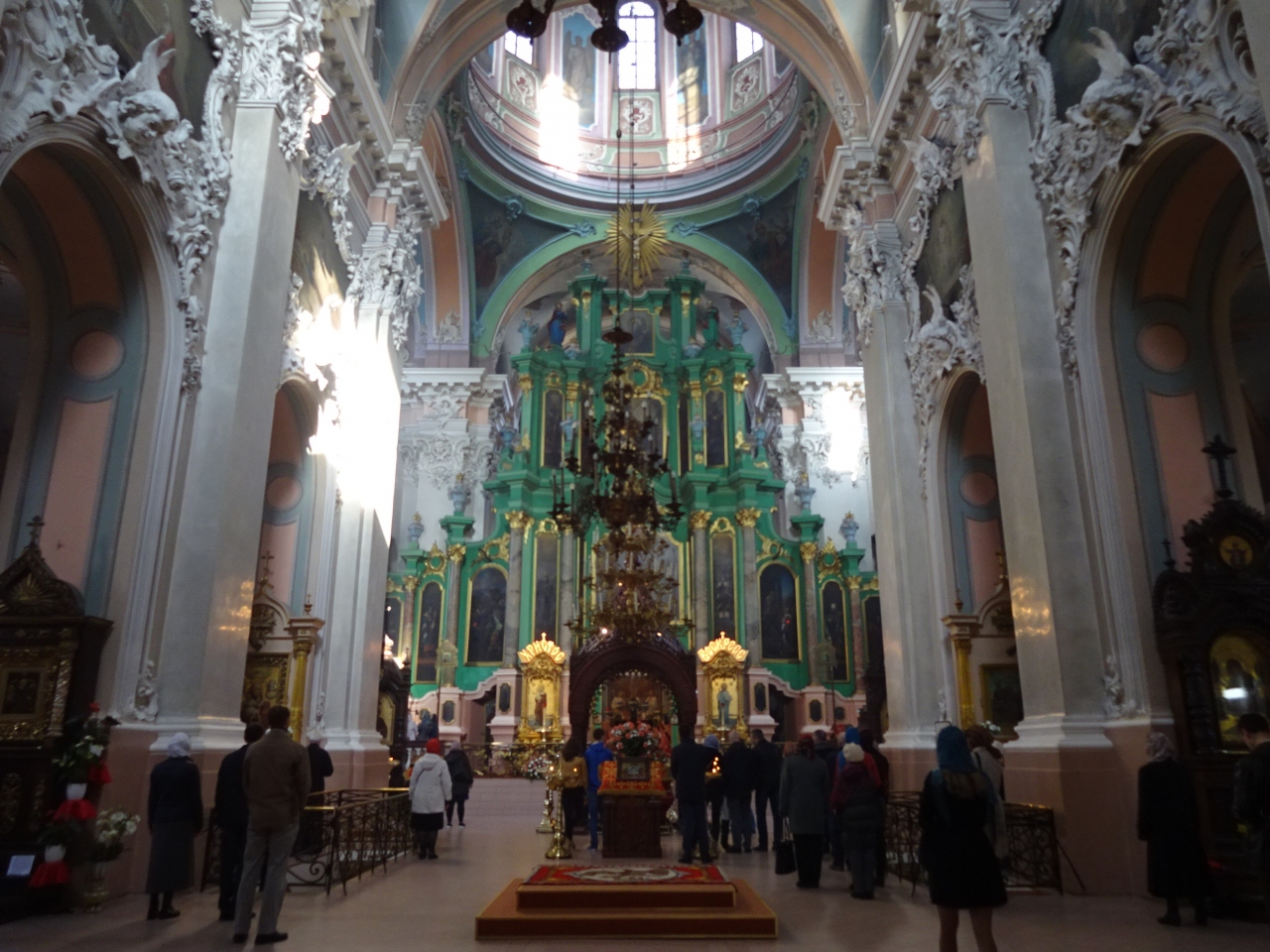 夜明けの門通りにあるこちらの聖霊教会は、こんな一等地なのに広い駐車場があるロシア正教会です。リトアニアにおけるロシア正教の中心的教会。外観も祭壇もバロック様式で造られていて、正教らしくない一風変わったロシア正教教会だそうです。祭壇の前には1347年に殉教した3人の聖人の遺体が保存されており、祭日ごとに赤、白、黒などの衣装に着せ替えられるそう。彼らの遺体には治癒の力があると信じられており、信仰を集めているそうです。
