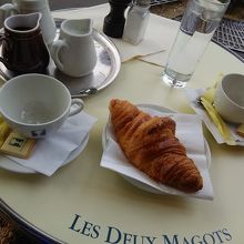 朝食セットは量が多いので、パンオショコラとクロワッサン、ショコラショーにカフェクレームを母と二人で注文。