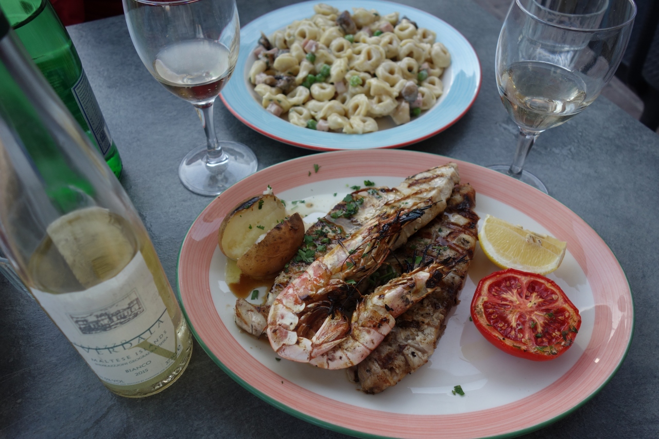 スリーマに滞在中にセントジュリアンで食事がしたくて行きました。海沿いにいくつかあるレンストランのひとつです。屋内席もありますが、やはりテラス席が雰囲気がよく夕暮れを見ながらの食事は格別でした。魚のグリル、ニョッキを頼みました、お料理の味はふつうでした。