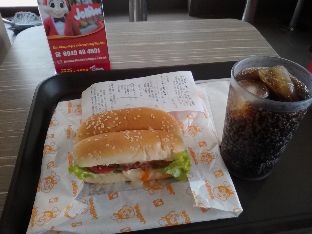 暑さしのぎも兼ねてちょっと入ってみました。ファストフードというとどうしても高いイメージがあったのですがメニューを見ると比較的安いものもありました。ビーフバーガーとコーラのセット(35000ドン)をオーダー。安いだけあってどちらもちっちゃ目、コスパ的には決してよくはありませんがベトナムテイストではないジャンクフード目的ということで…、がしっかりとバジルの葉もはさまれていました。嫌いじゃないですが除いて食べました。味は…普通です。Free WiFiが使えます。