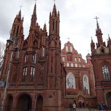 聖アンナ教会は15世紀末に建てられた、後期ゴシック様式の教会。33種類もの異なる形のレンガが使われており、その曲線的美しさはフランボワイアン(火焔式)ゴシック建築の傑作とされているそうです。建設から500年以上も当初の姿を留めている、ヴィリニュスでは珍しい教会だそう。