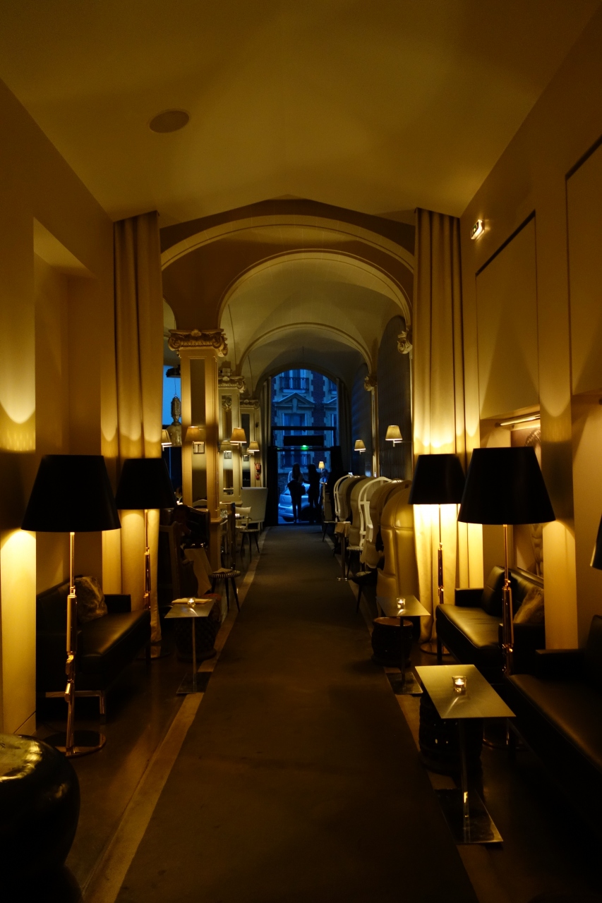 パリでのビジネスディナーの会場でした。内装はモダンなインテリアで、スタイリッシュなレストラン。