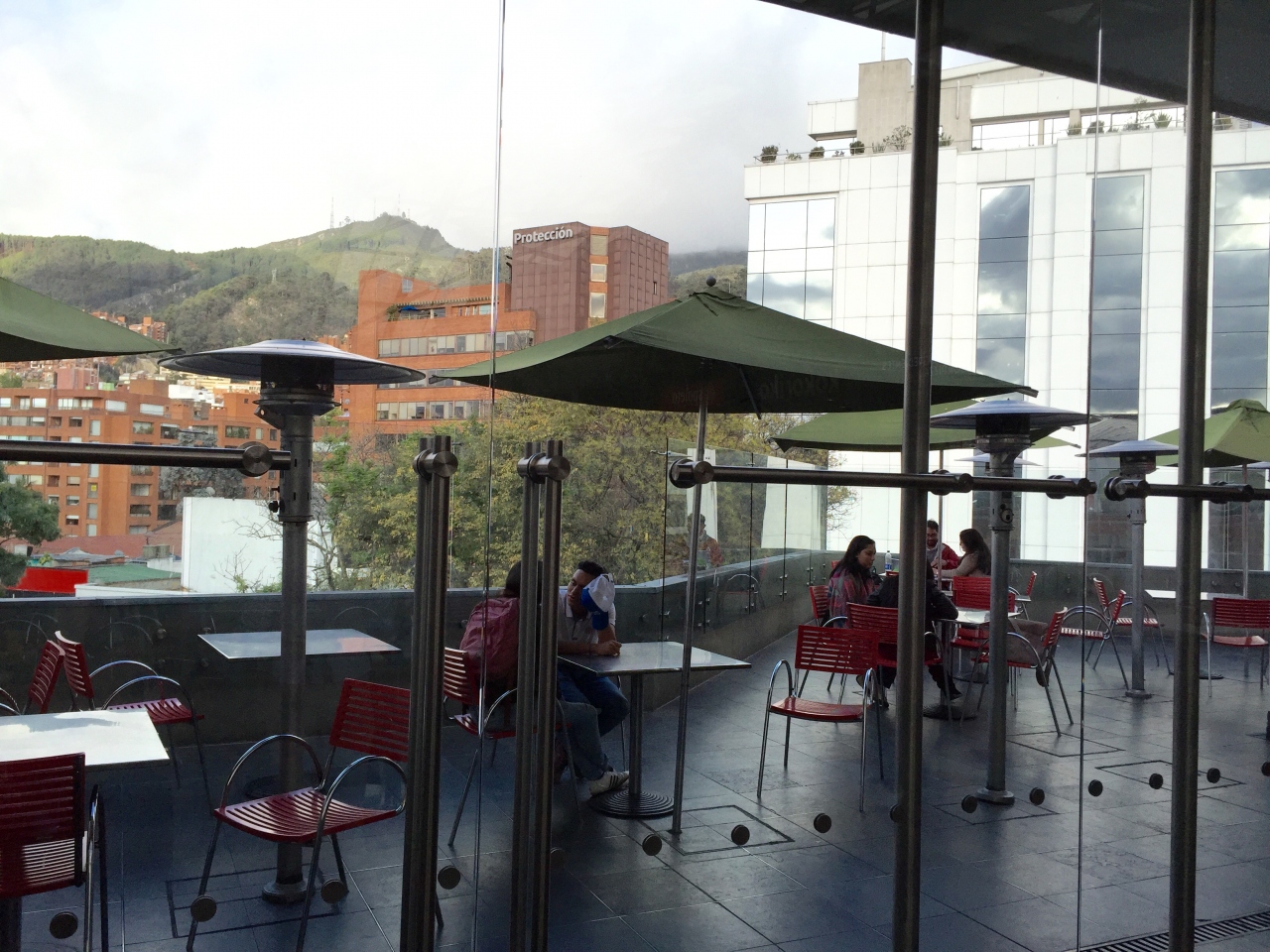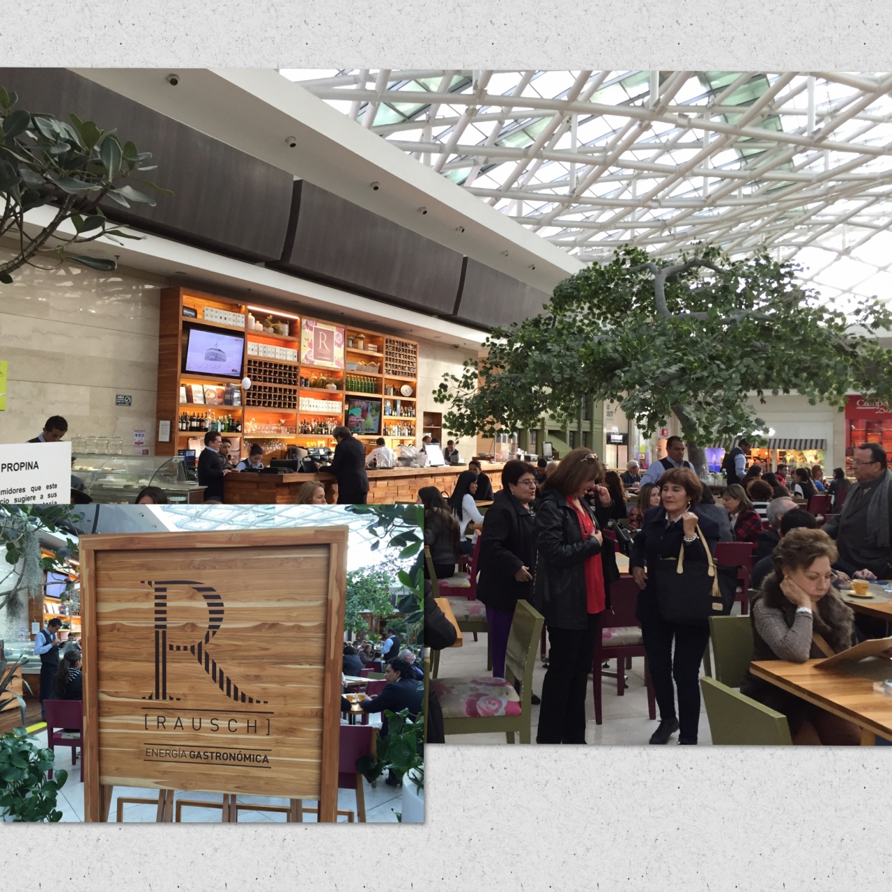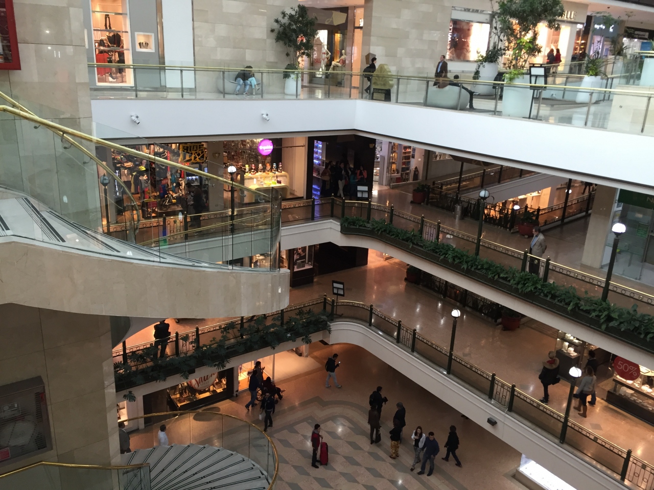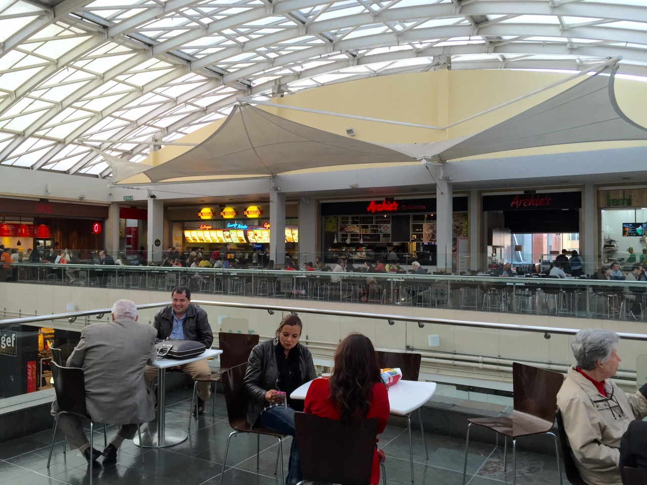 吹き抜け棟の一番上がフードコートです。斬新な形のフードコートです。
