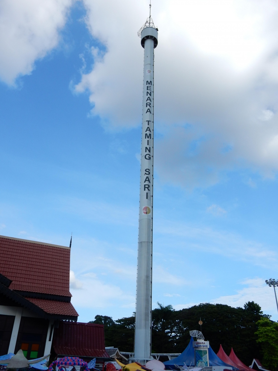 タワーを中心に360度回転する円筒形の乗り物で上がっていき、頂上で3周ぐらいしてから降ります。セント・ポール教会のある丘より高いところまで上がりますので、街や観光名所、夕焼けの美しいマラッカ海峡も一望できます。