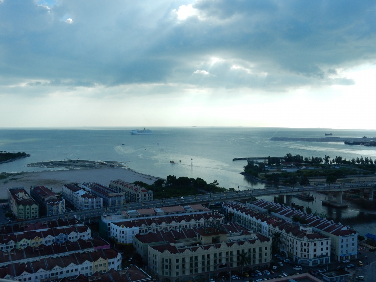 マラッカ海峡と市街地を一望。お菓子をくれるのは何故だろう?