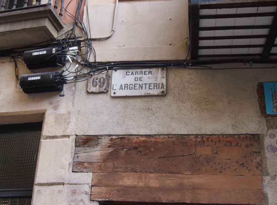 アルジェンテリア通りは地下鉄JAUME1世駅前から真っ直ぐサンタマリア・ダル・マル教会へ続いている商店街で教会への近道です。レストラン・バル・生ハムを売るお店などがあり賑やかで夕方は混雑します。色々寄り道しながら教会まで行くのも面白いと思います。