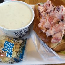 ボストン名物である、ロブスターロールとニューイングランドクラムチャウダー(ホワイト)がセットでおすすめとして売られていたので、迷わずそれにしました。