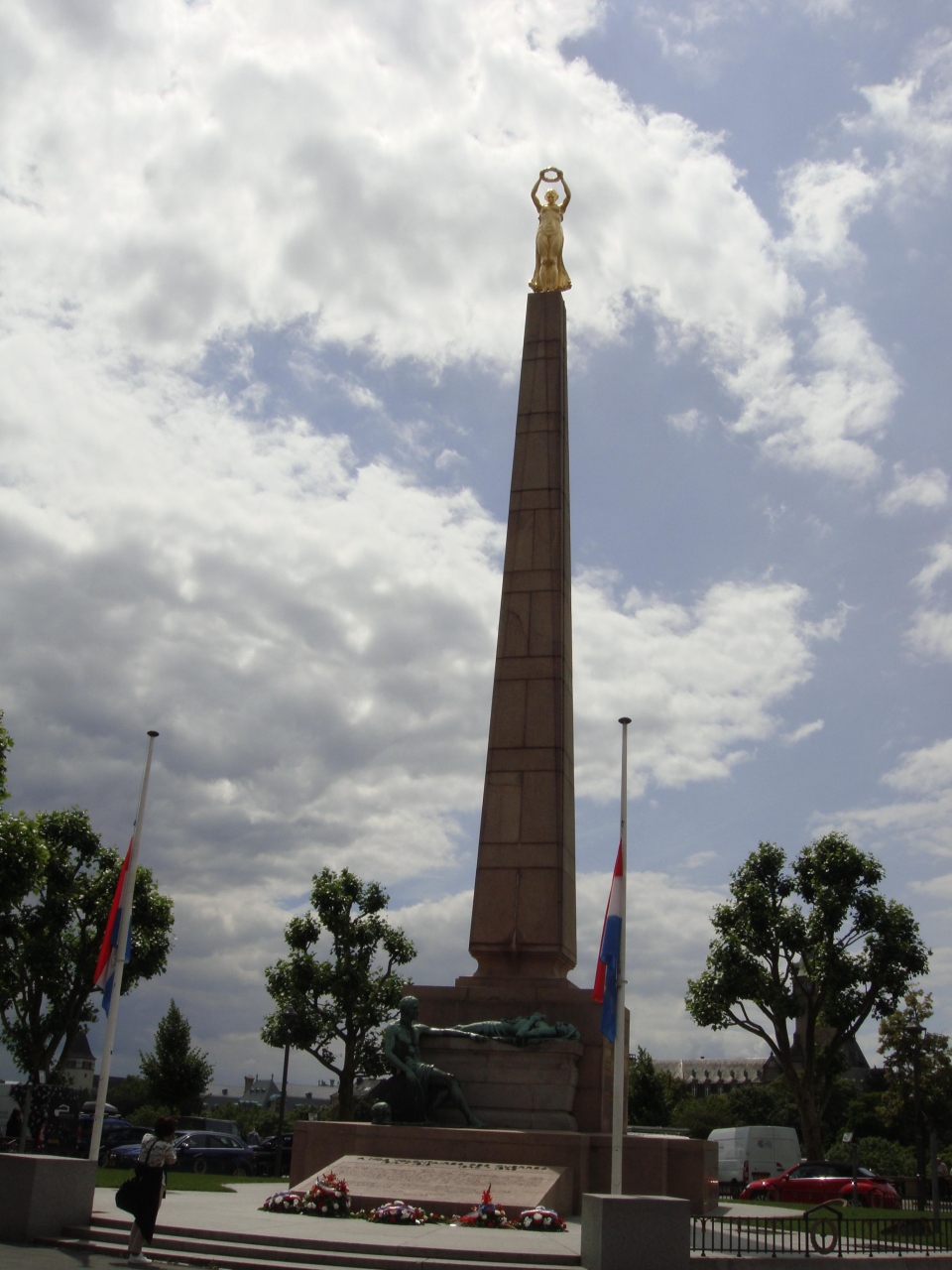 憲法広場の下の公園の旗が、フランスのニースで起こった爆発事件に弔意を表したのか、半旗になっていました。
