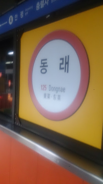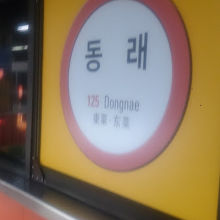 久しぶりのプサン訪問で東菜の街を訪れた際に利用しました。以前訪れたときは1号線の高架の駅しかありませんでしたが、現在は4号線の地下駅も出来、乗換駅になっており、大きな駅になっていました。1号線側の駅は地下鉄とは言うものの地上の高架駅で、乗り換えは地上から地下まで上下移動がありますが、さほど苦労もなく乗り換えられる構造になっています。利用したのが土曜日の夜でしたが、若者を中心にたくさんの利用者がいました。便利な場所なので駅を含めてにぎやかなです。